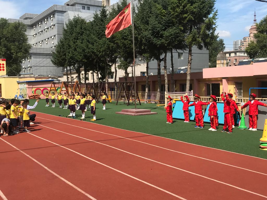 每周一的升旗仪式,小朋友们都会用自己的方式表达对祖国妈妈的爱。瞧,升旗手护旗手迈着庄严的步伐走来,看着五星红旗披着朝霞冉冉升起,雄壮的国歌如浪如潮地拍打着我们的心扉,小朋友们心中充满着庄严激昂的气息,爱国的种子在每一颗纯净的心灵深处扎根发芽。