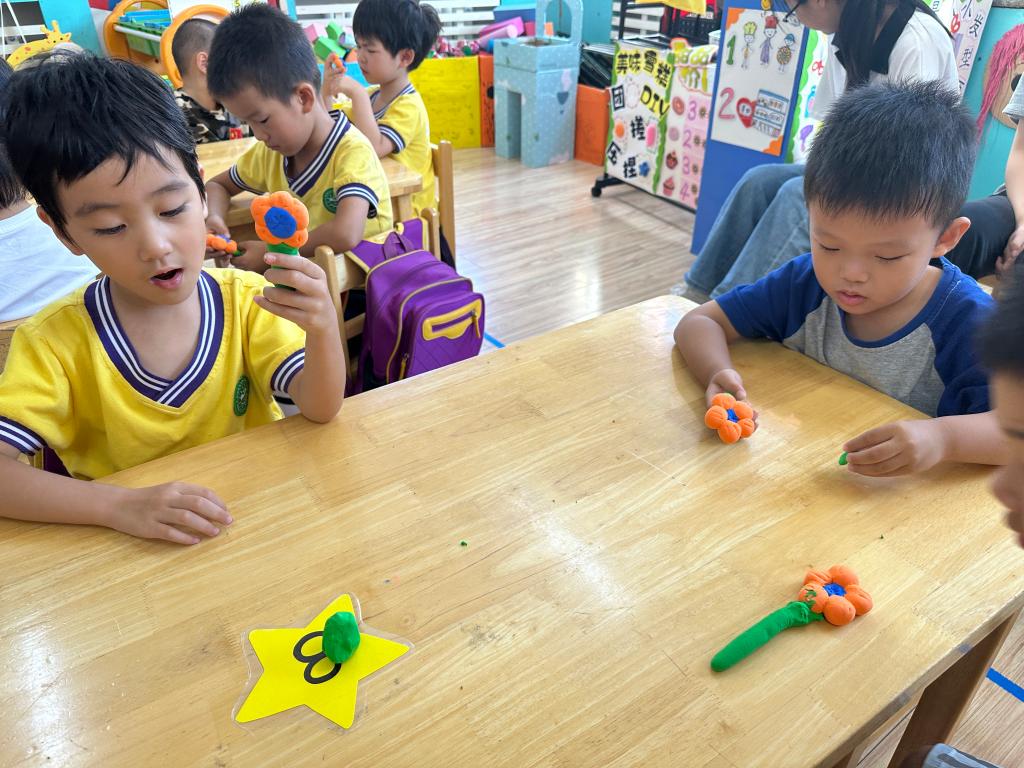 宝贝们觉得一句话送给老师们远远不够,每个人还想着亲自制作小礼物送给老师。于是他们开始制作,用实际行动表达对老师的爱。