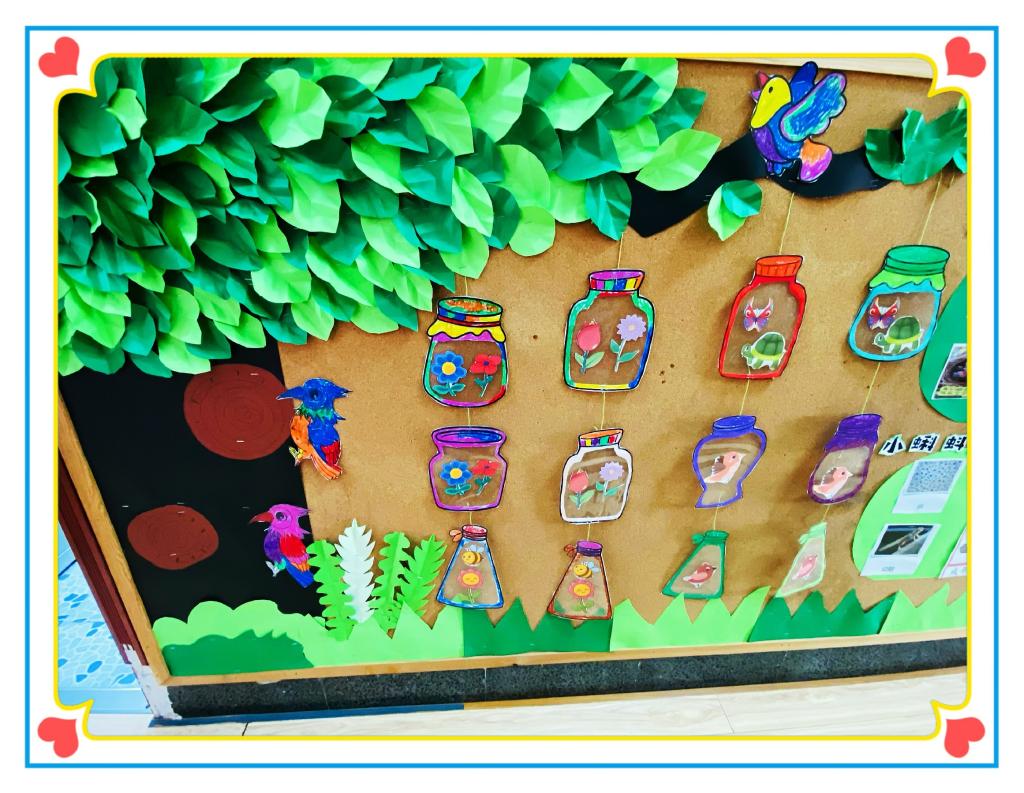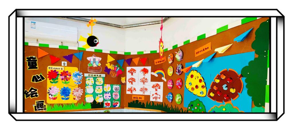 在这里,我们为孩子们的想像插上了翅膀,既让他们的才能得到肯定,也让他们的成果得到了展示。愿我们每位教师都能朝着更好更远的目标去努力,努力为幼儿创设一个利于幼儿发展,有益幼儿去发挥的环境氛围!