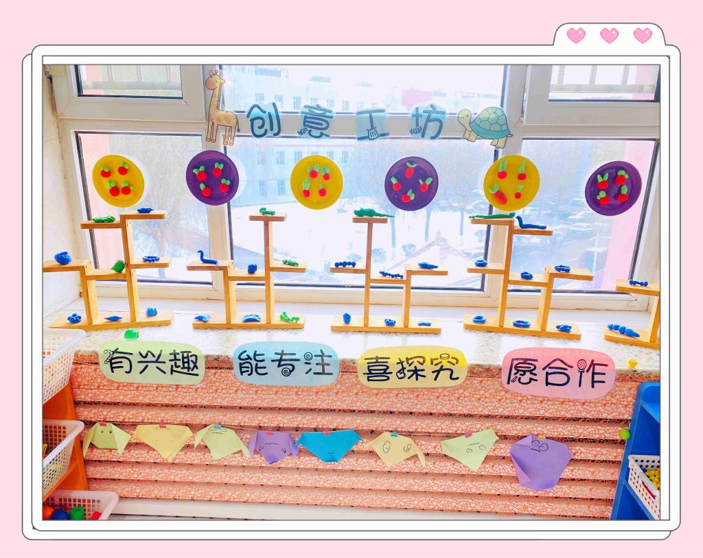 我们是以“童乐童趣”为主题,提供给幼儿一个自主环境展示平台,能让幼儿积极参与和自由表现。根据班级主题活动内容,小朋友们自己动手制作手工作品,布置在班级环境中,使班级既温馨又有创意。温馨的环境才能给予幼儿舒适感和安全感,开放的空间也让幼儿能够自主选择喜欢的活动区域和材料,全身心的投入活动中。我们期望不断创设有利于幼儿与环境积极互动的机会和条件,让环境“促进每一个幼儿富有个性的发展”。