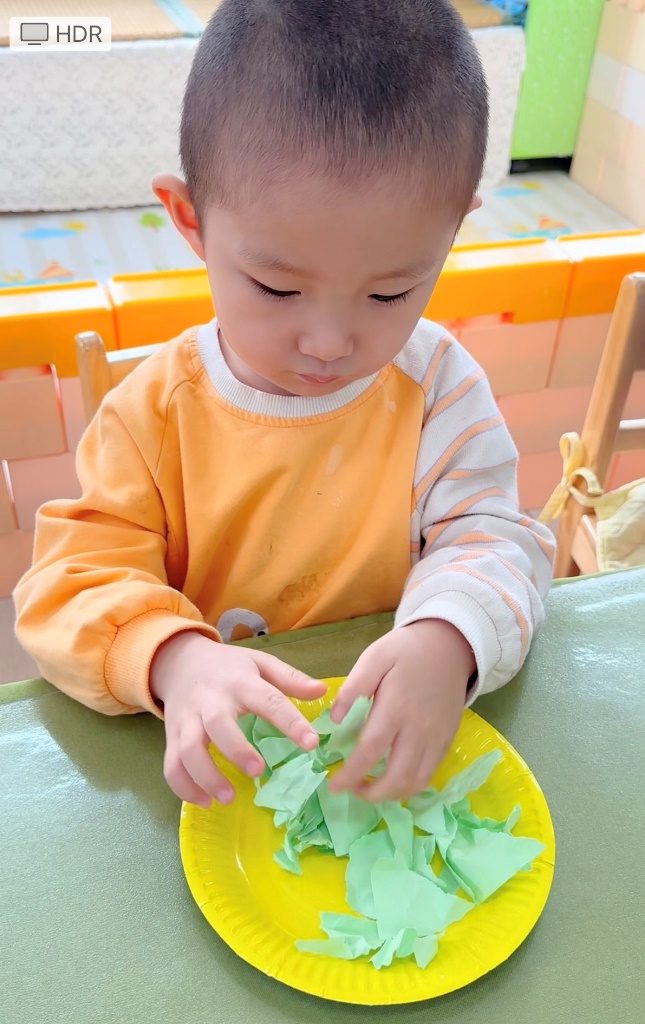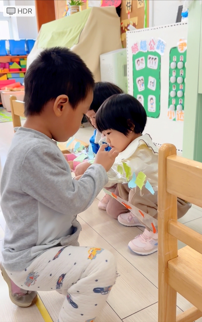 班级中常见的纸,是孩子们发展精细动作过程中主要探索的材料。通过撕卡纸、报纸、折纸、纸巾等不同厚度的纸,知道纸有不一样的类别,感受不同材质的纸需要不一样的力量。