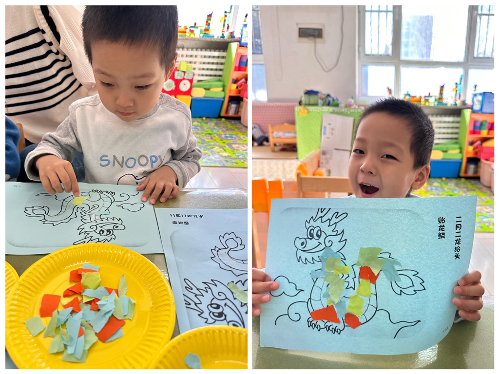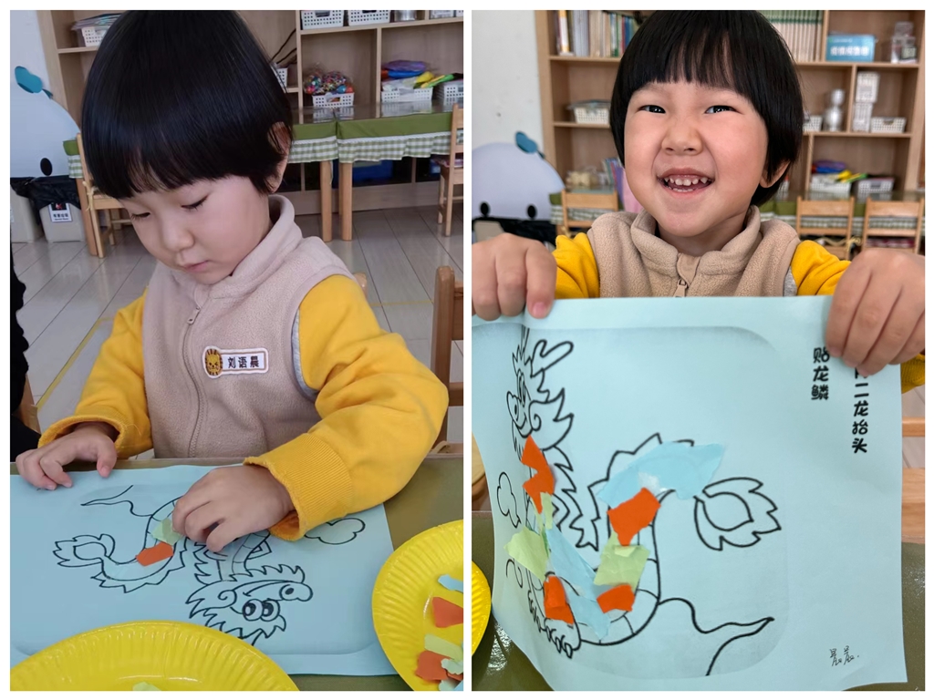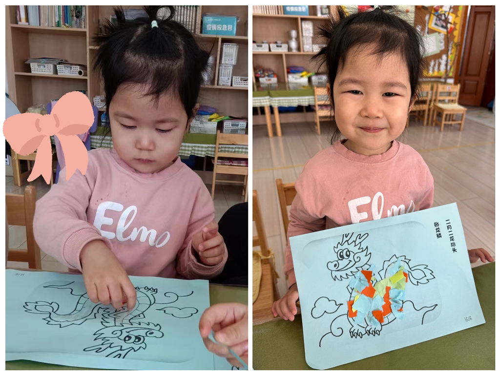 撕碎的纸片粘贴在美丽的作品上,增添趣味性。