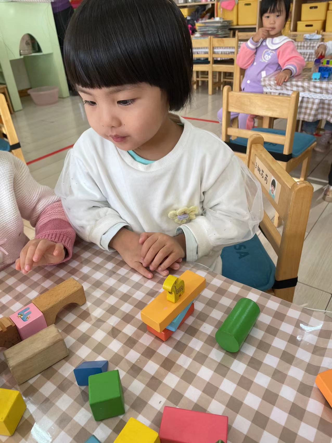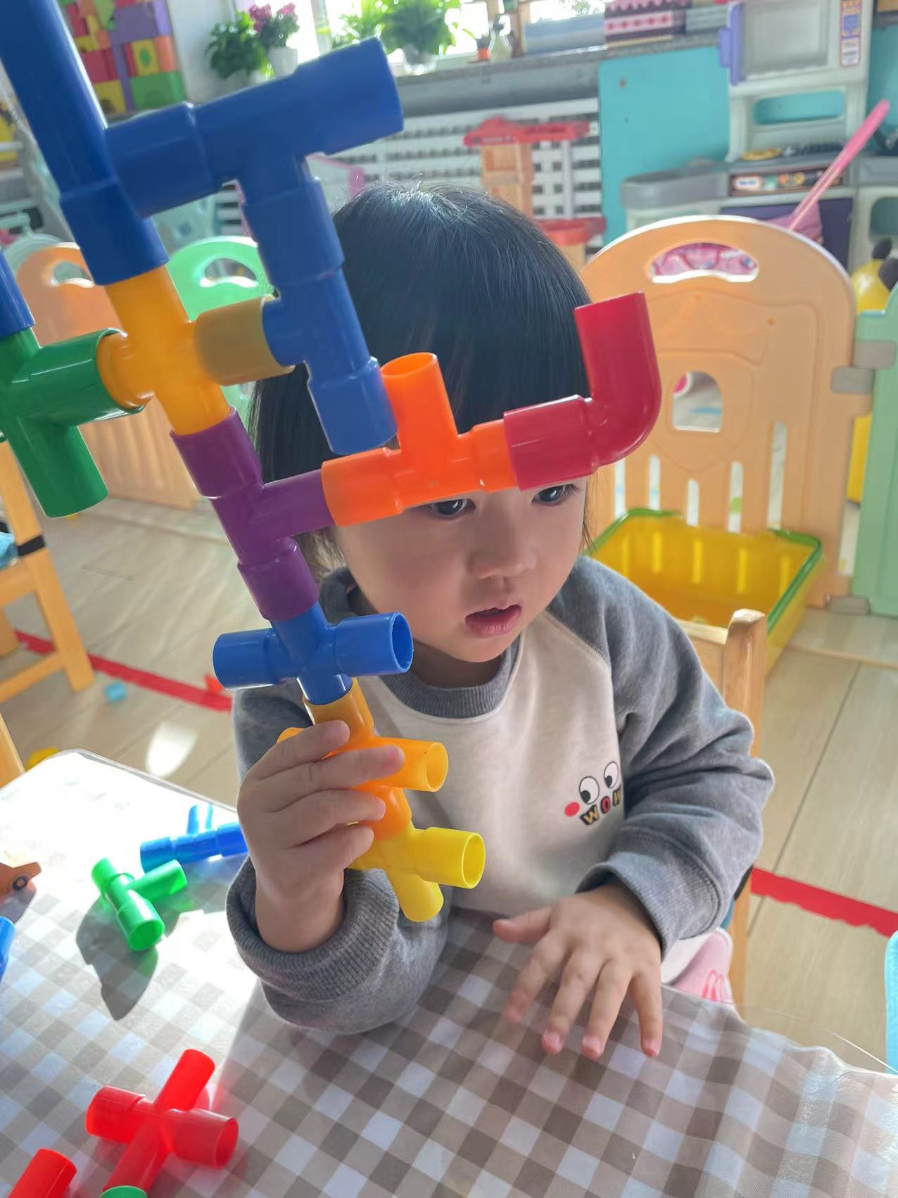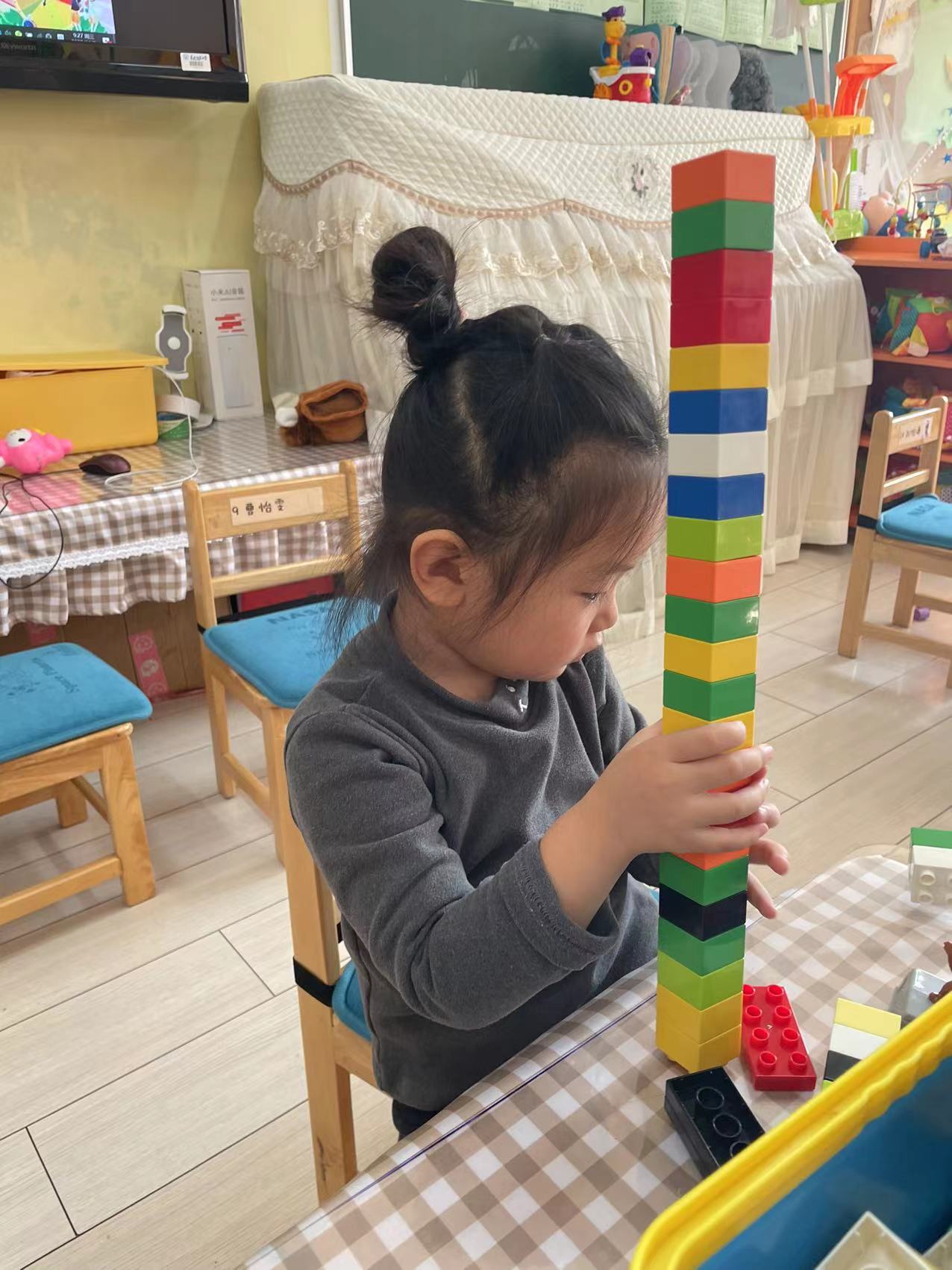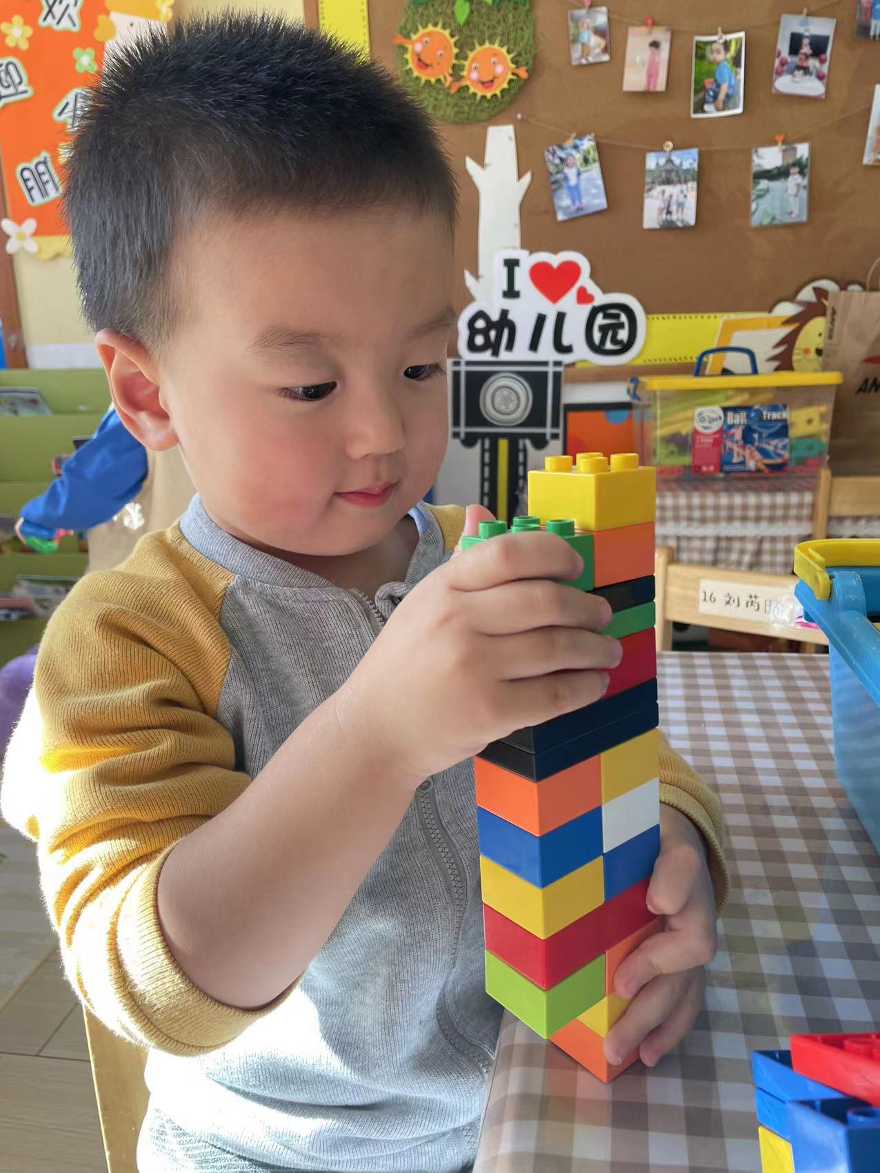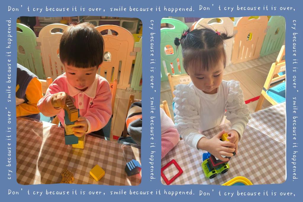 2-3岁幼儿是随意的垒高,他们更热衷于将材料垒高,推到、再垒高、再推倒。对于小小班幼儿来讲,垒高和平铺是最常见的搭建方式!小朋友们通过不断的垒高来建立自己的内在空间感,通过不断地的平铺来提升自己的专注力!