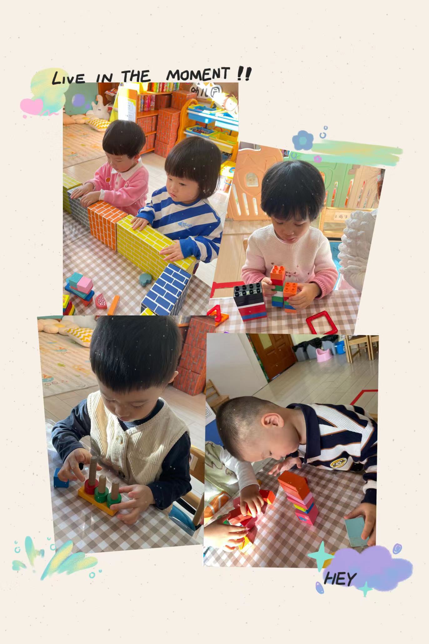孩子们想法各异,他们用自己喜欢的材料开始了自己的游戏!