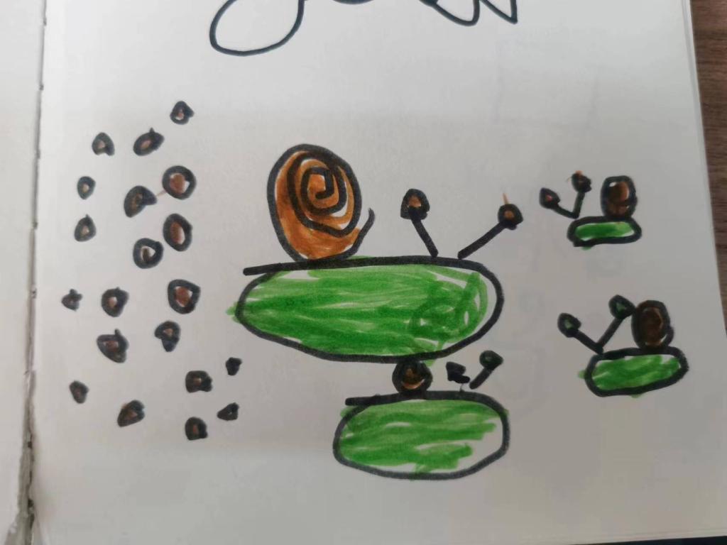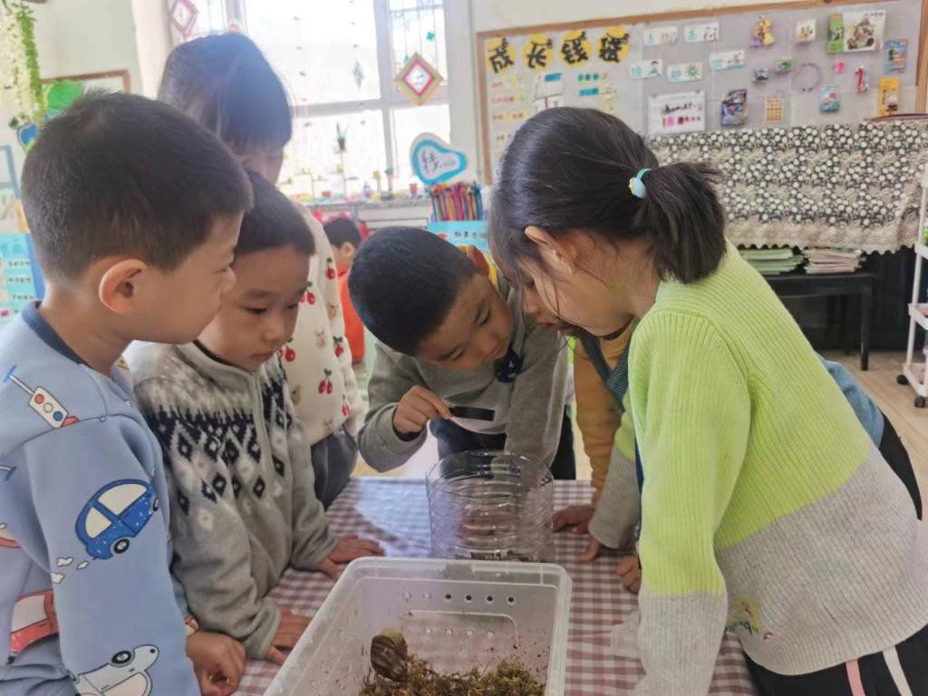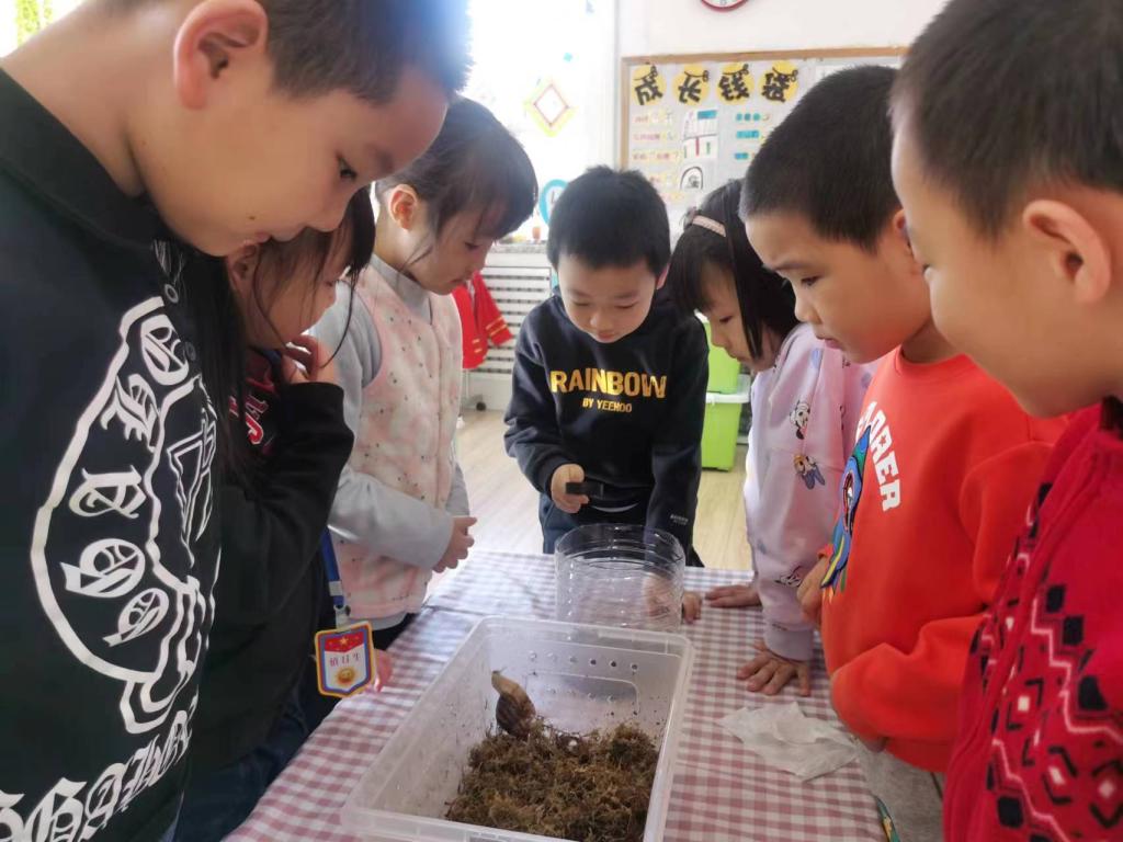 今天早上小朋友们发现蜗牛生了很多蛋宝宝,他们既兴奋又兴趣浓浓,尖叫起来。