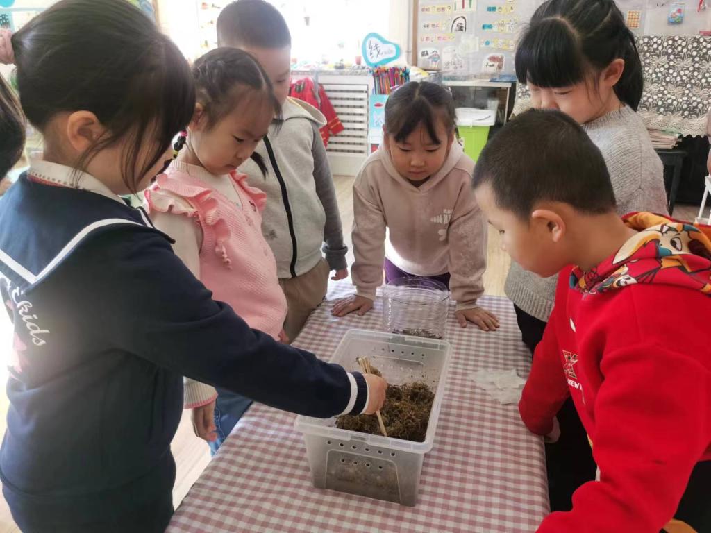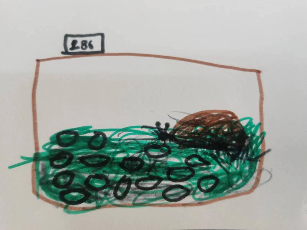 我们一起把蜗牛蛋埋在土里盖上草,等待小蜗牛的到来,观察蜗牛蛋饲养员小朋友也增加了新任务,开始了蜗牛蛋的观察。