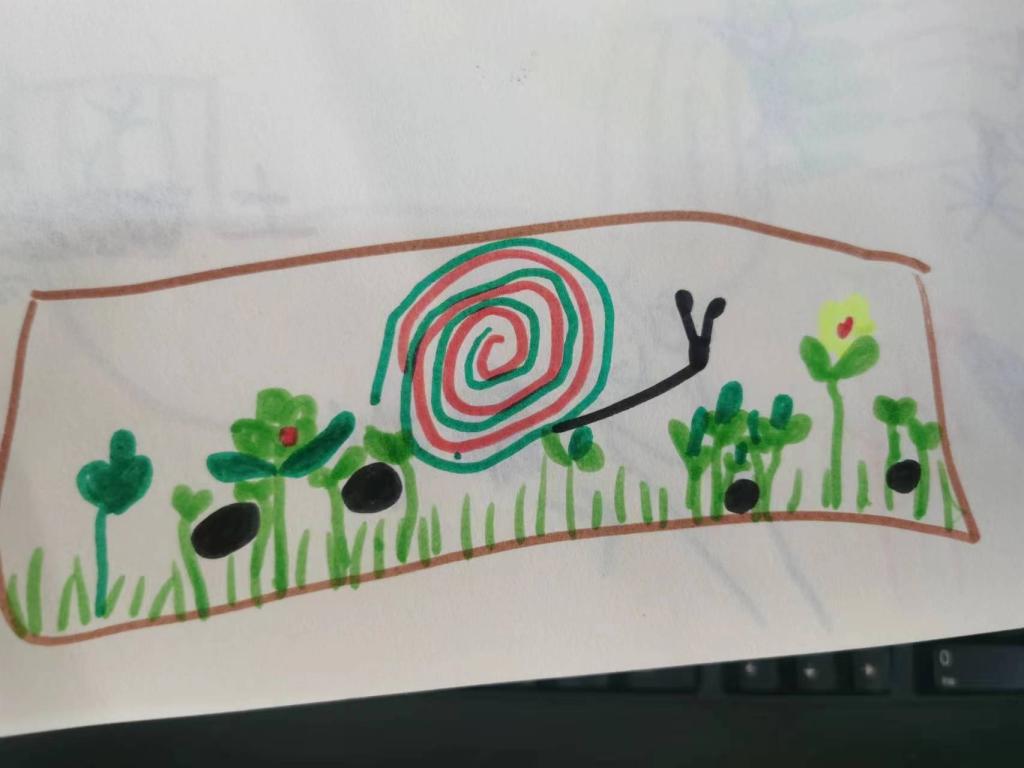 孩子们观察发,现白玉蜗牛头、腹、足、身体肌肉都白色如玉,背负螺旋形的贝壳,壳呈低圆锥形。白玉蜗牛的头部显著,有2对触角。它的腹面有扁平宽大的足,足部分泌滑腻白润的粘液。行走时将身伸出壳外,遇到惊扰时则头身皆缩入壳内。