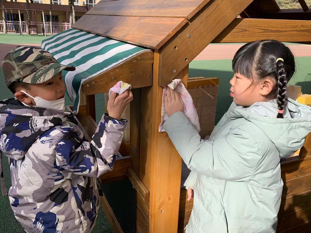“学雷锋,从我们做起”,,孩子们通过亲身体验,用自己的小手清洁美丽的幼儿园“爱护环境”打扫公共区域,体会到了“学雷锋, 做好事”的快乐。“小雷锋”们不怕脏不怕累,为幼儿园的添加了一道亮丽的风景线。