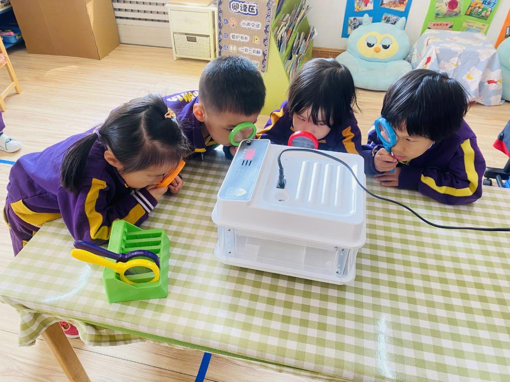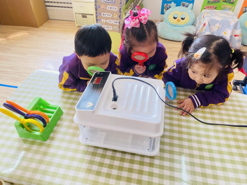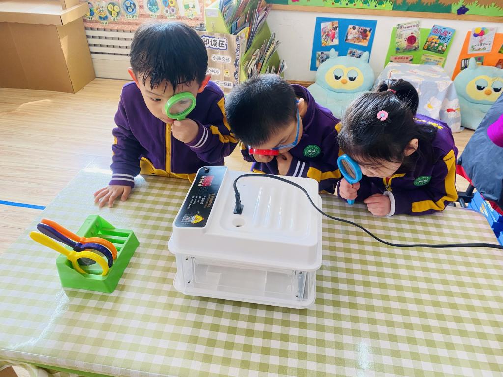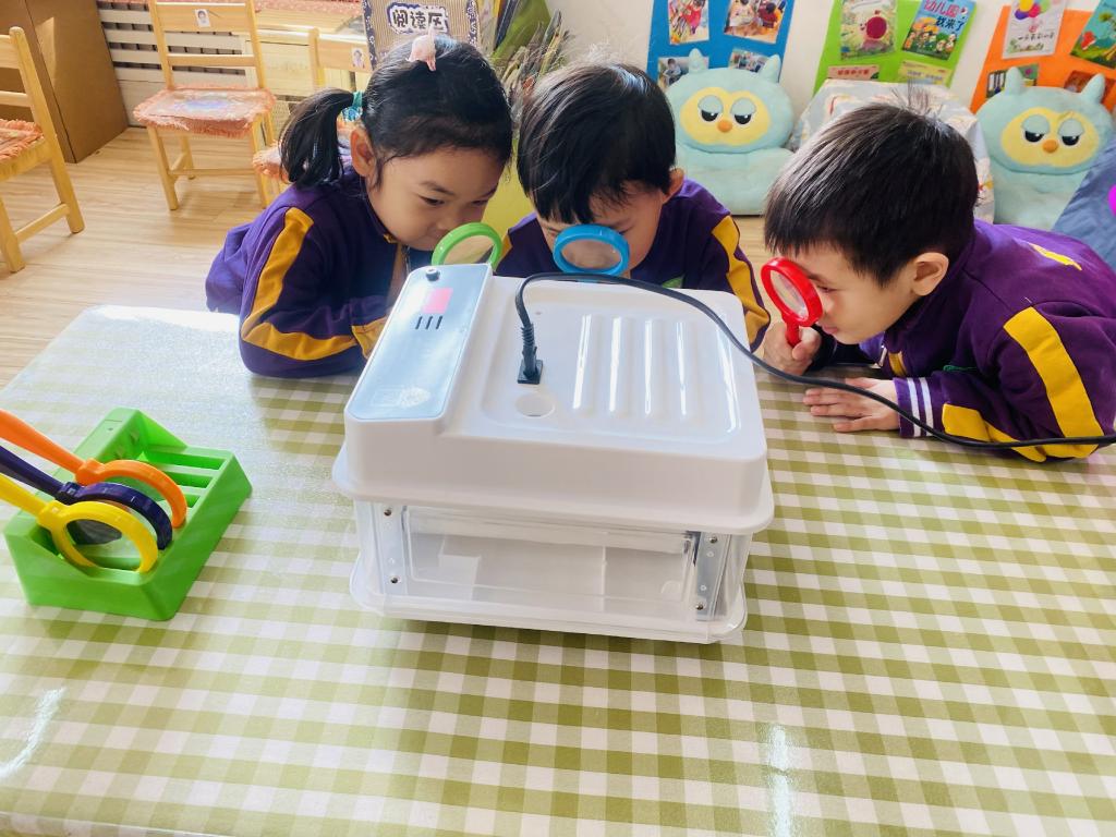 孩子们每天都在观察孵蛋器里的蛋宝宝有没有变化。