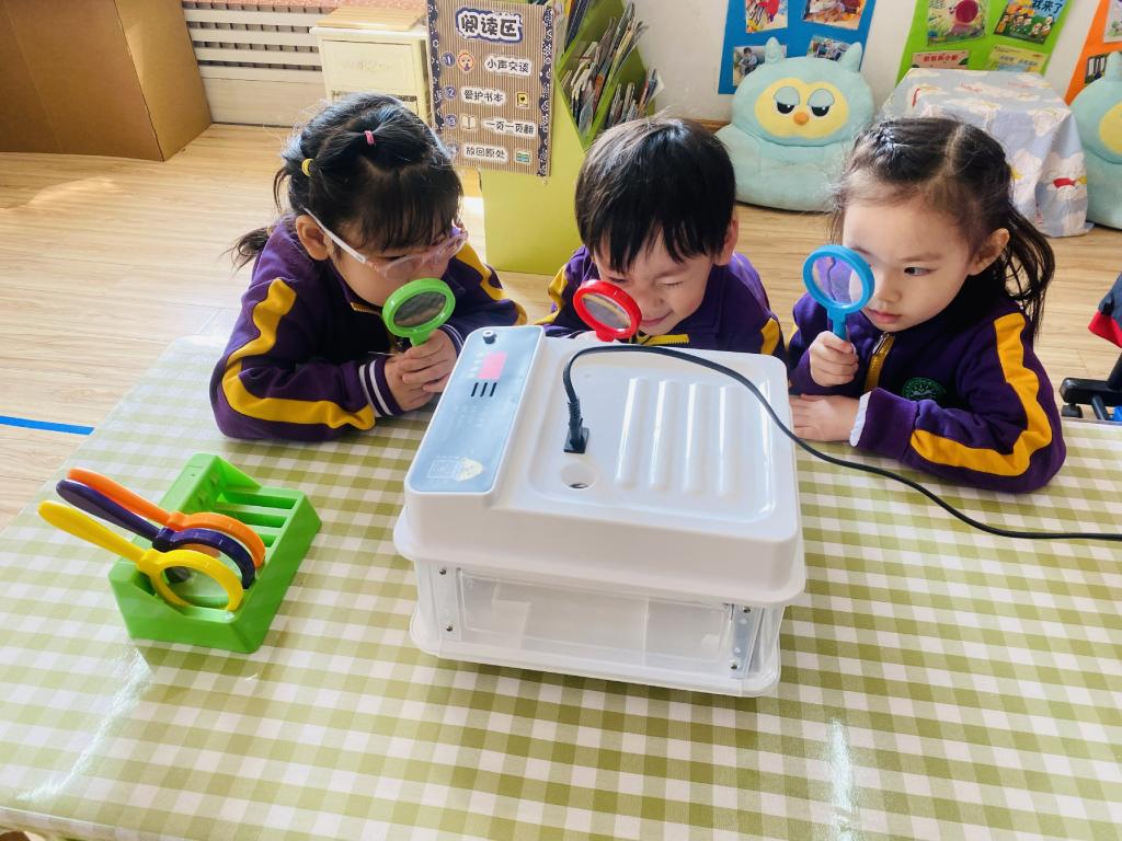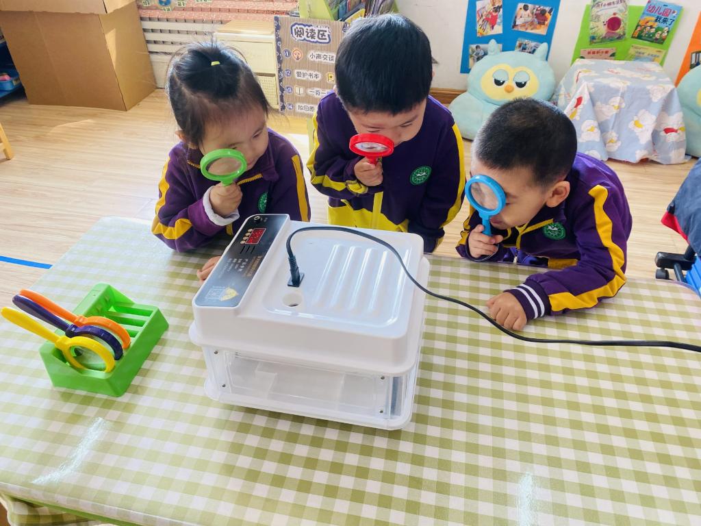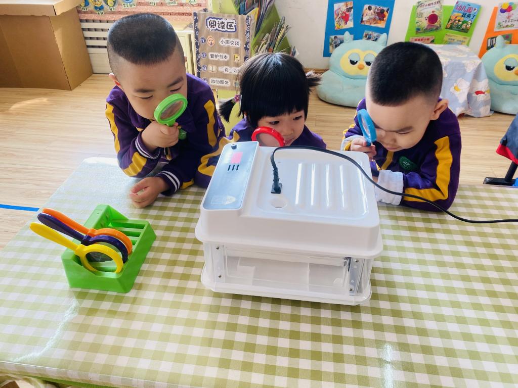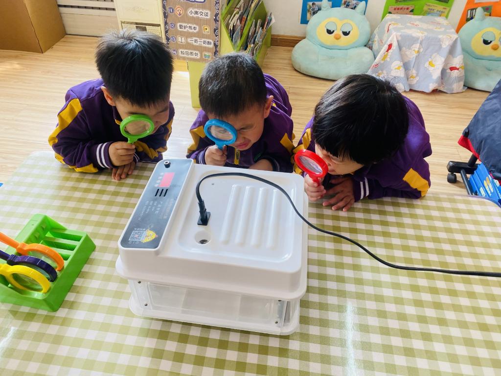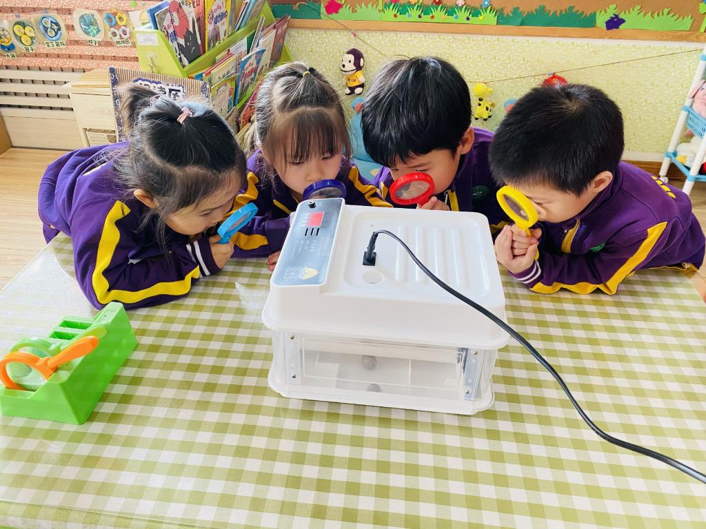 孩子们每天都在观察孵蛋器里的蛋宝宝有没有变化。