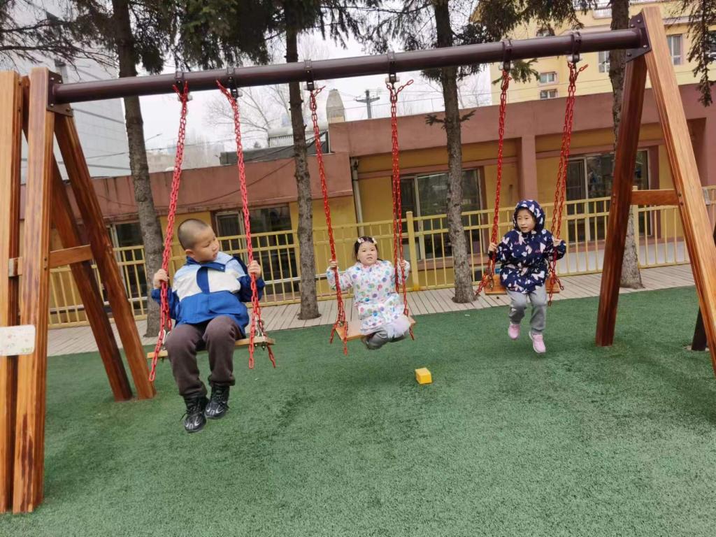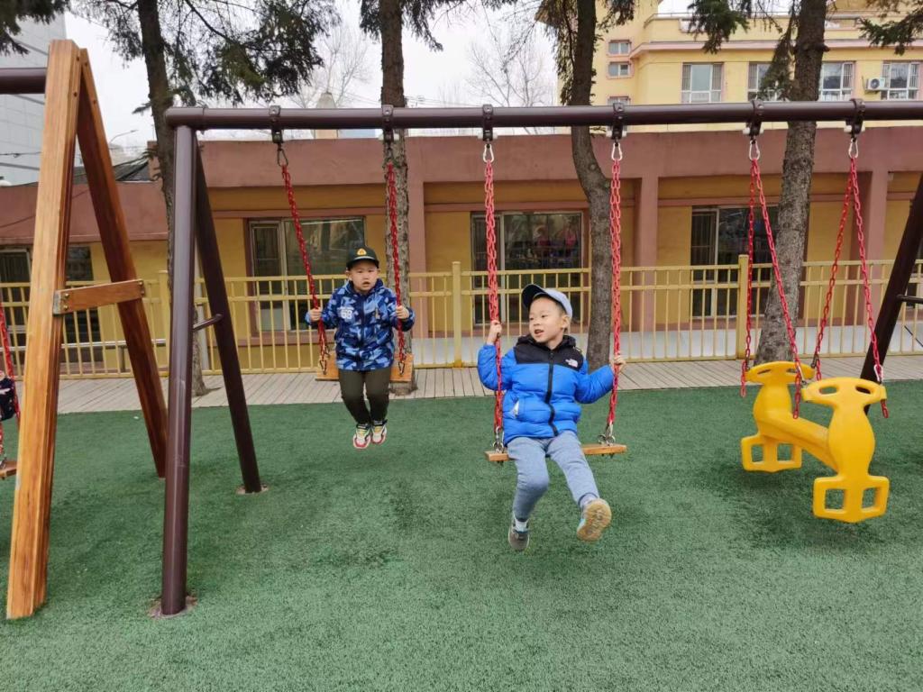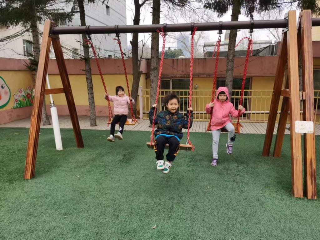 古时的秋千多用树枝为架,再拴上彩带做成,后来逐步发展为用两根绳索加上踏板的秋千。寒冬一过,换上春装,架起秋千,在空中飘来荡去,翩翩若飞。不仅强健了幼儿体魄,也能培养幼儿勇敢的精神。
