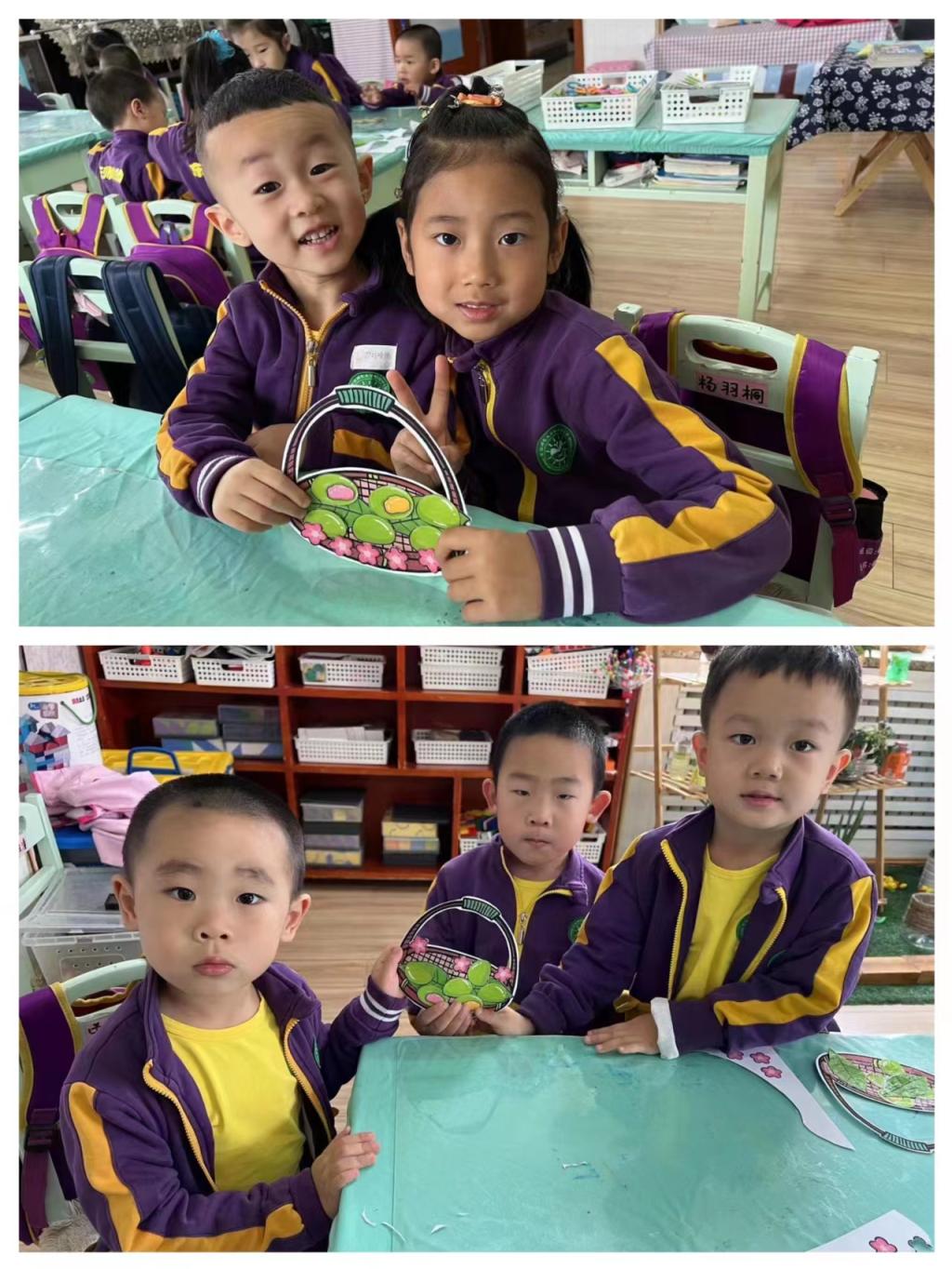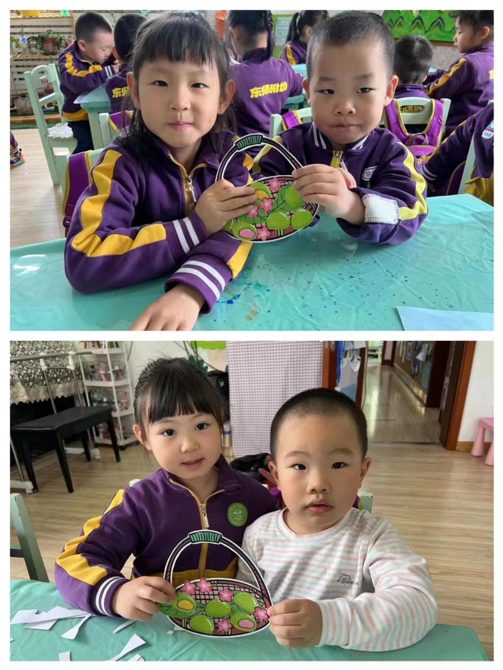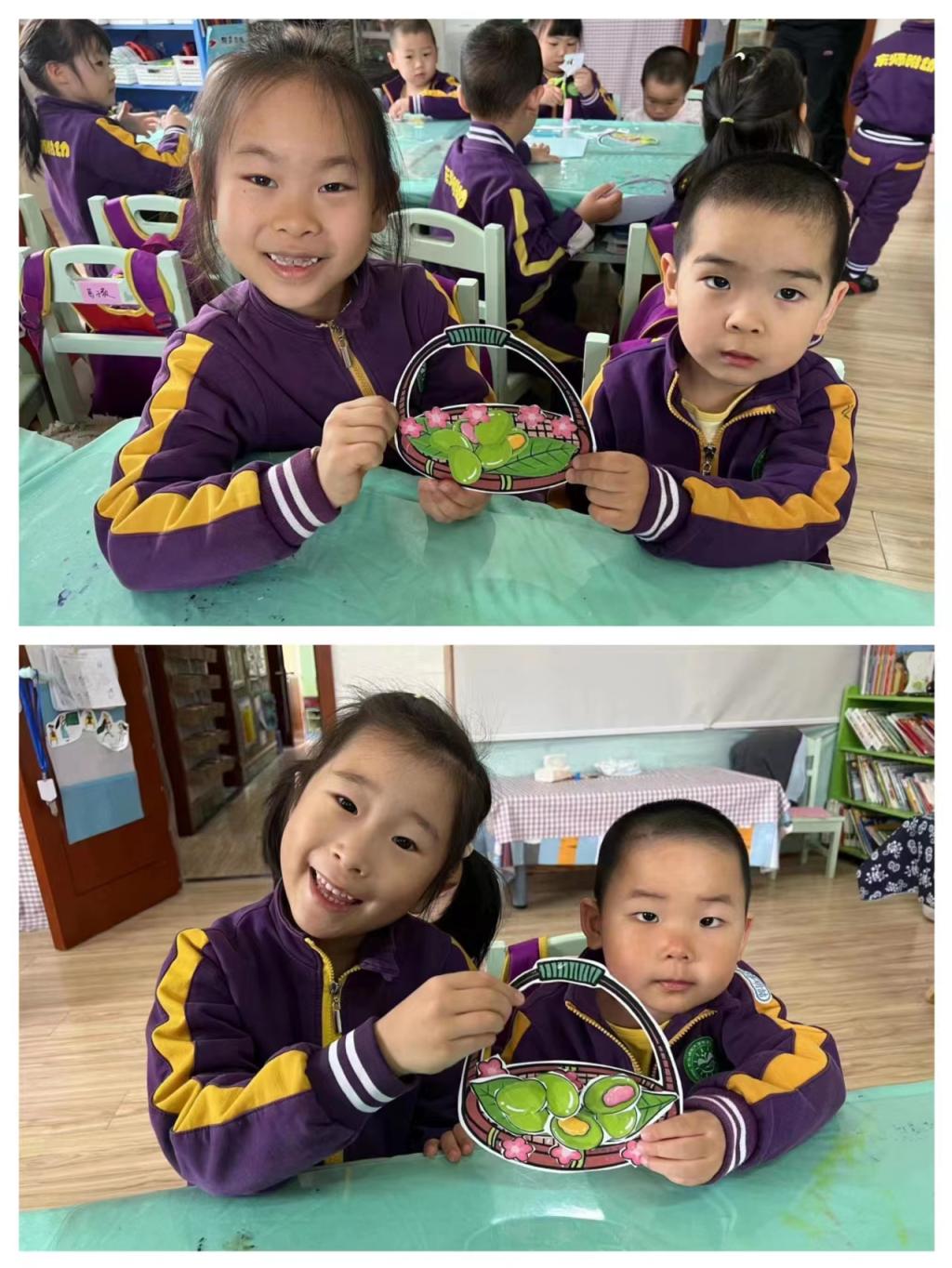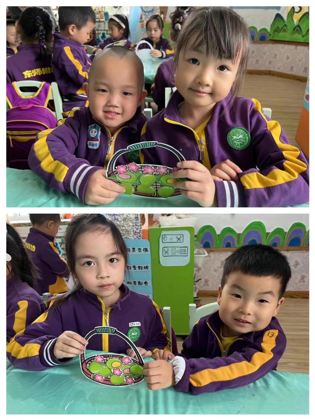 三月三,吃青团。借一口小食,邂逅盎然春意。果果一班的哥哥姐姐带着青团粘贴画走进了苗苗五班,和弟弟妹妹共同制作了一小篮子“青团“,共享春意,我们一起来看看吧!