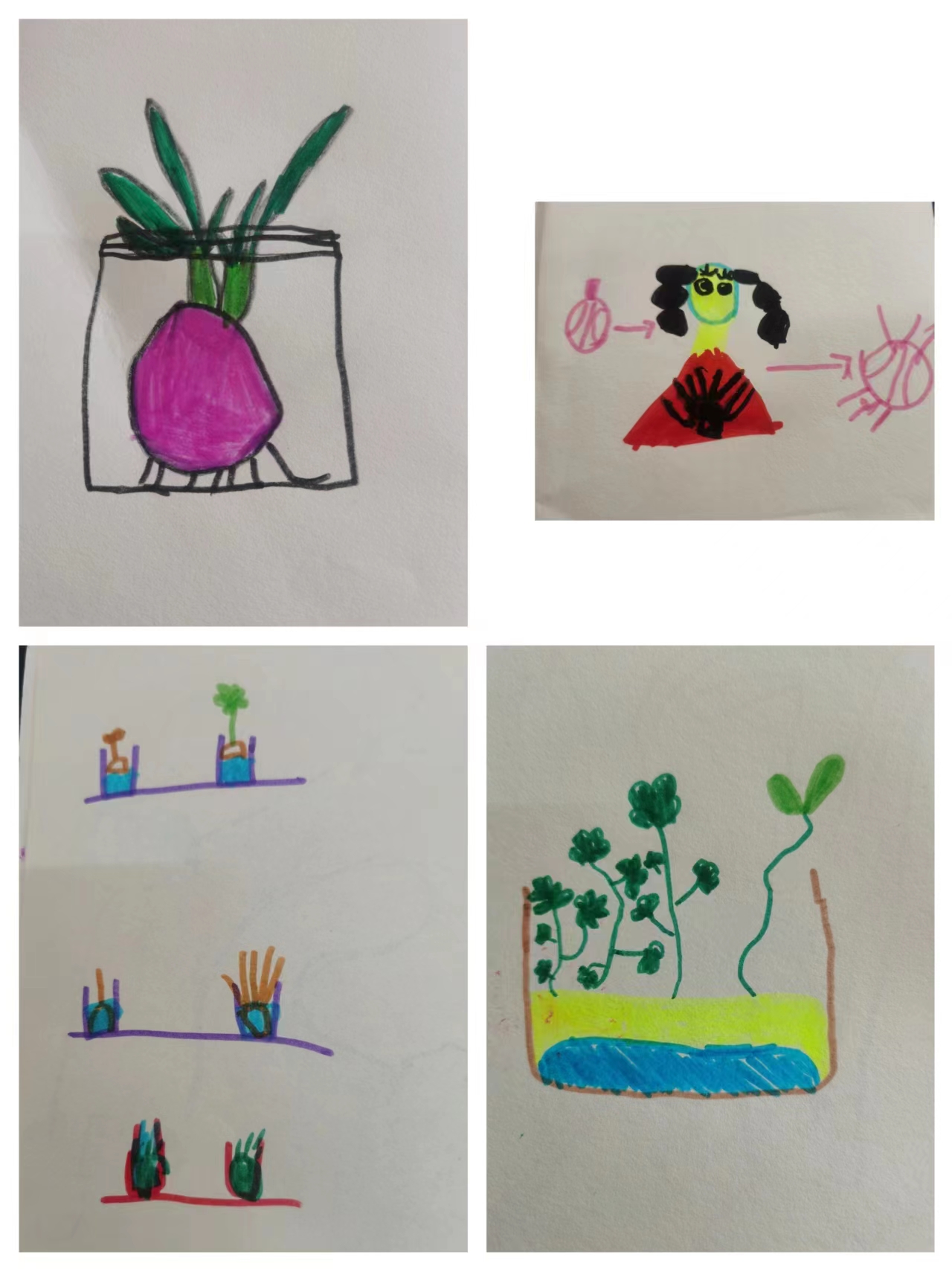 水培植物的"加入"不仅美化了环境,更激发了大孩子们观察植物、用心照顾植物的情感。让我们一起来照顾好这些水培植物,一起期待它们的生根、发芽、长叶、开花吧!