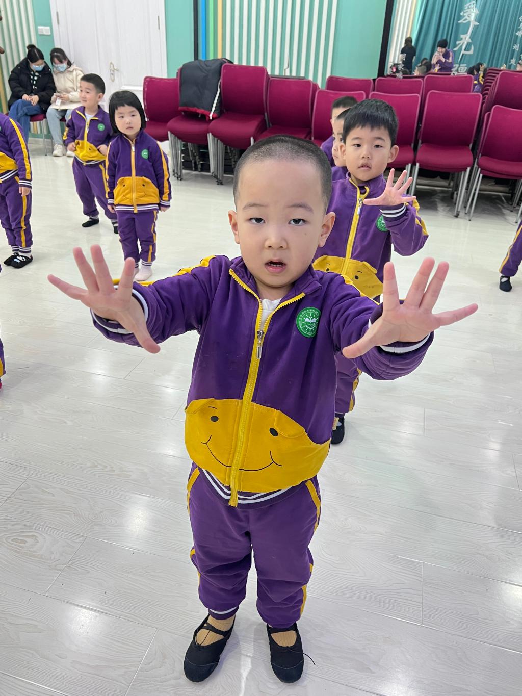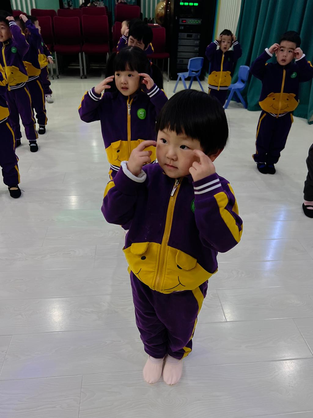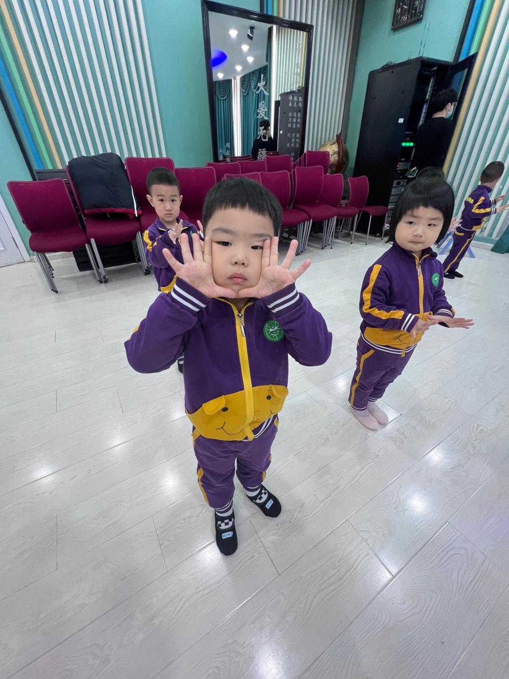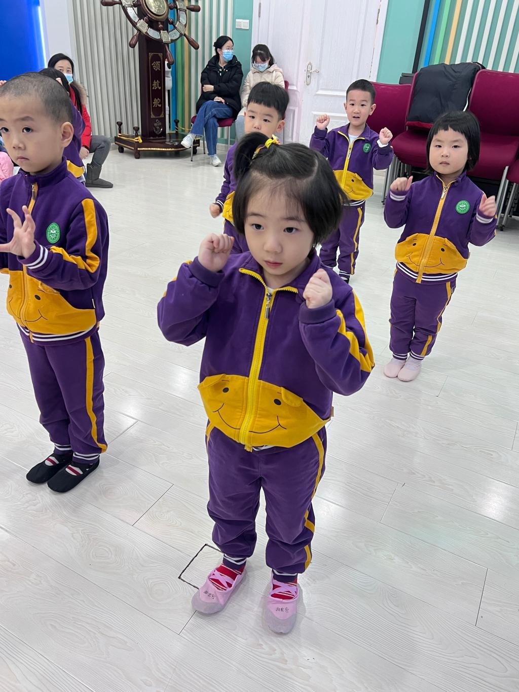 每一个宝贝脸上都露出“喜气洋洋”的笑容,感受着音乐与舞蹈魅力。