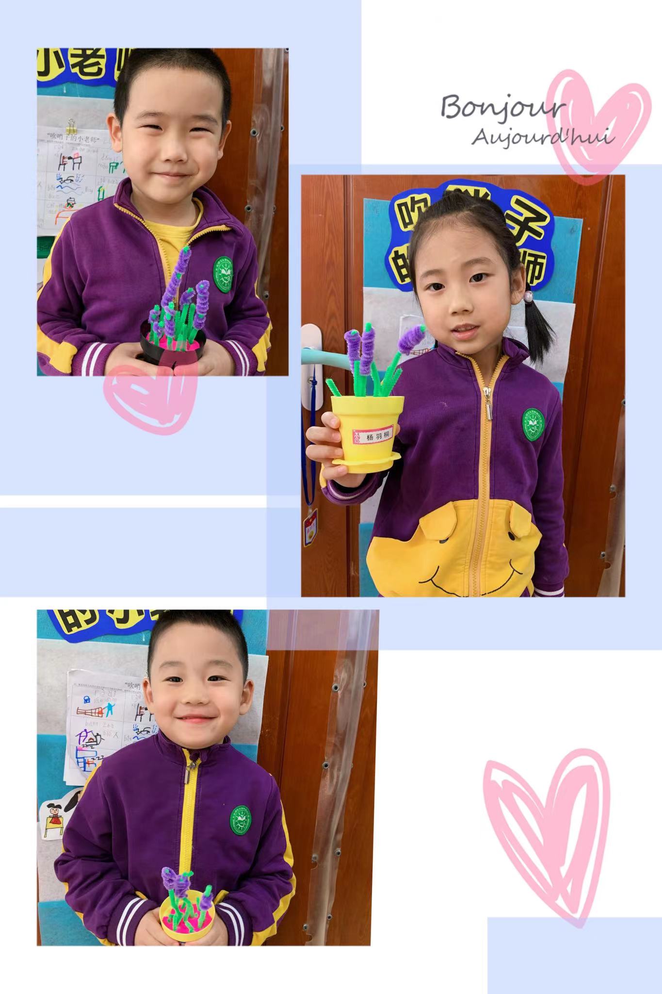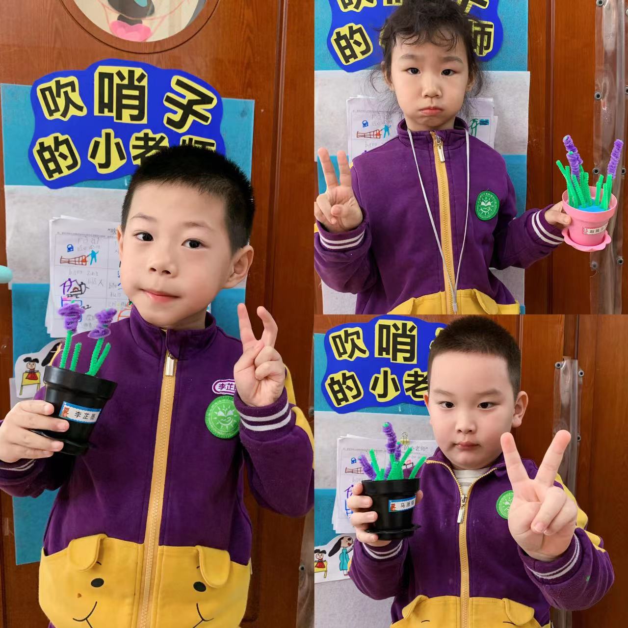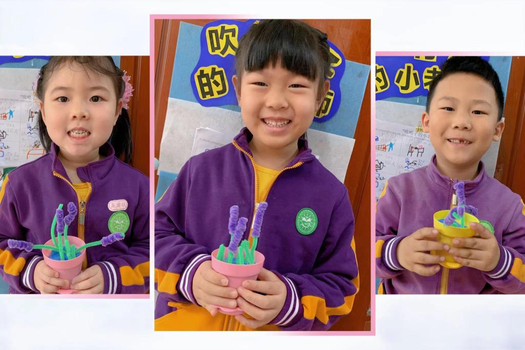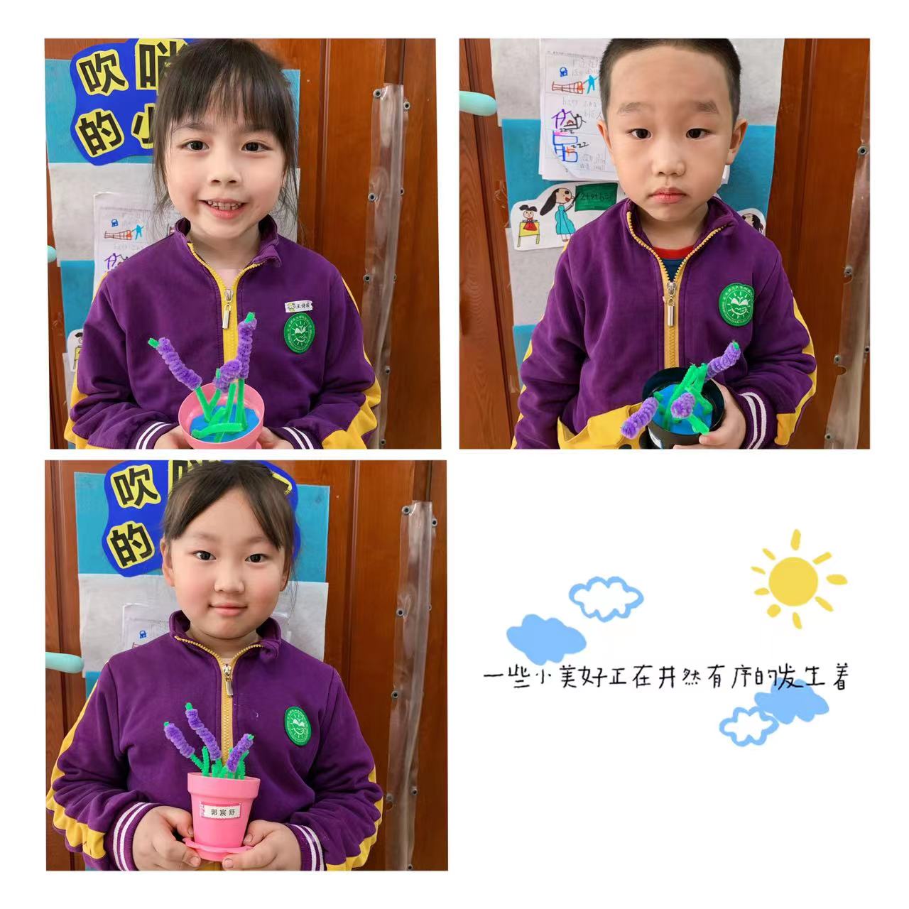 毛茸茸的扭扭棒在小朋友们的手里变成了漂亮可爱的薰衣草小盆栽。
