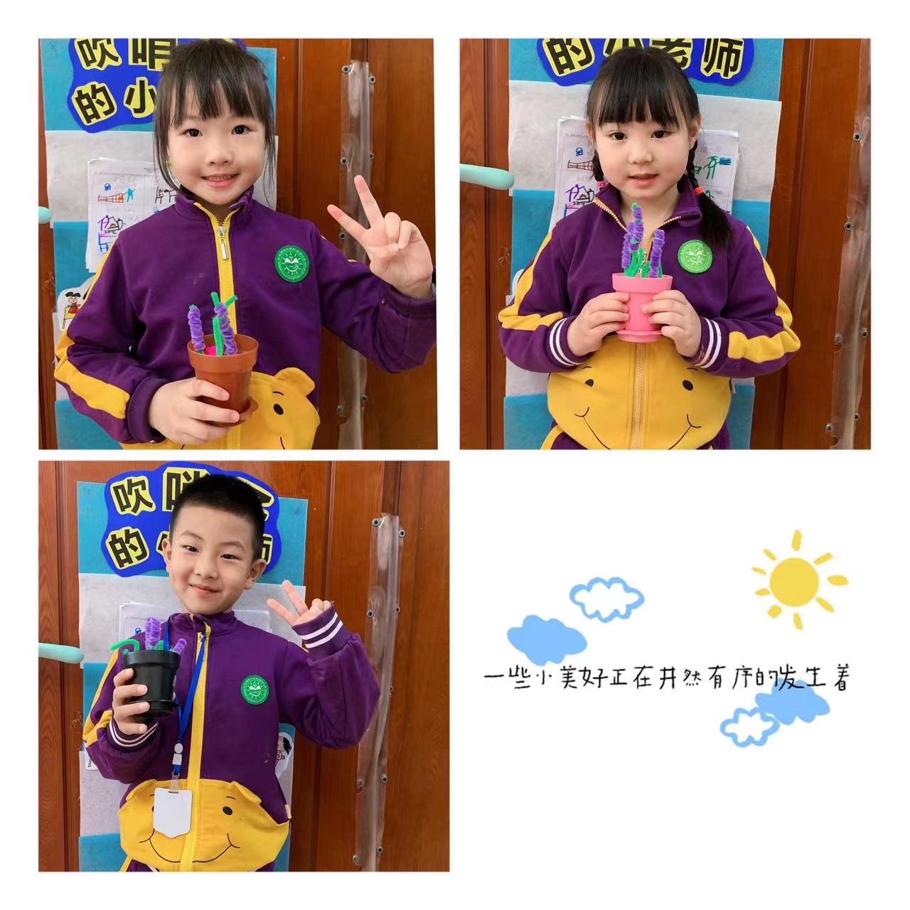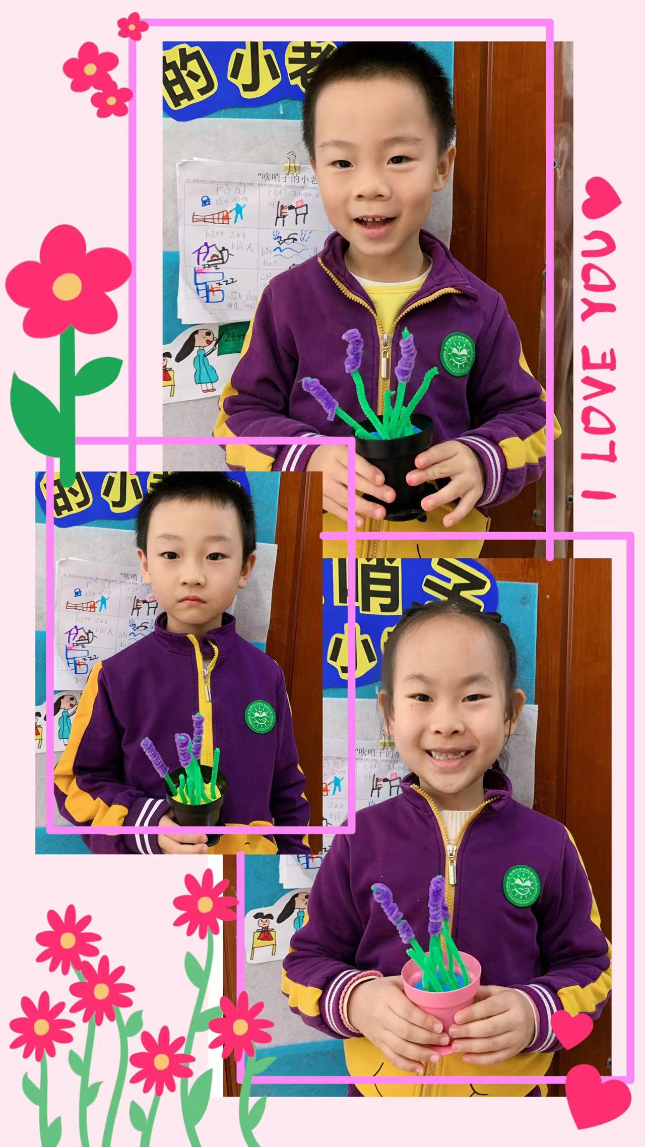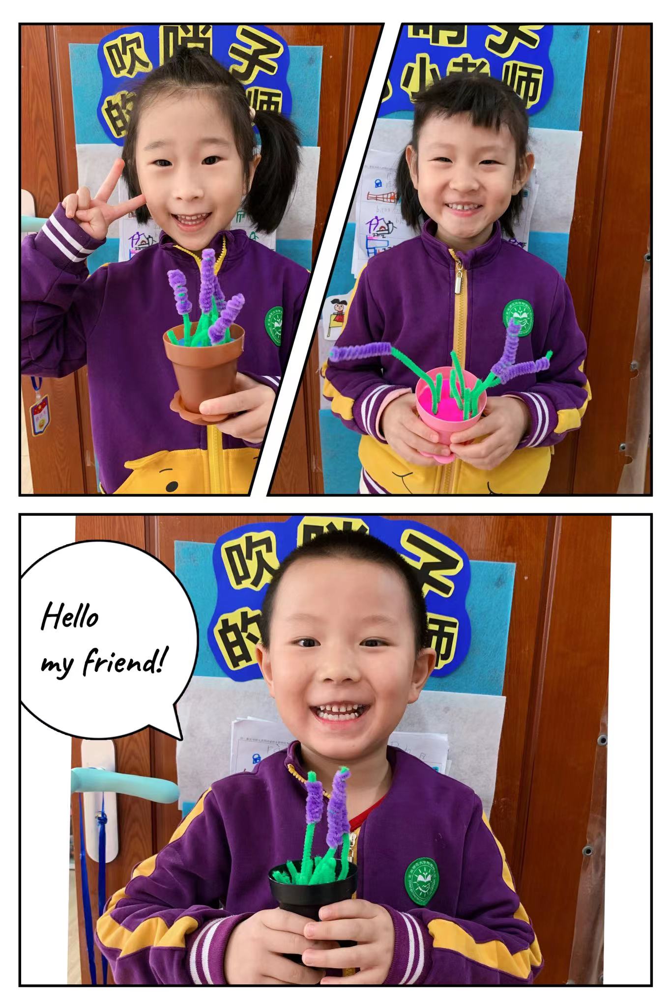 毛茸茸的扭扭棒在小朋友们的手里变成了漂亮可爱的薰衣草小盆栽。