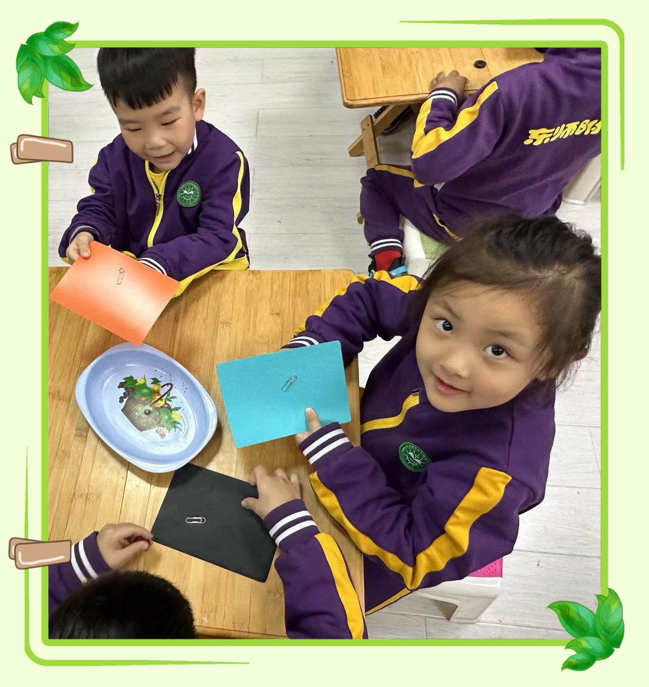 通过操作,孩子们发现隔着不同材质的板,小磁铁也可以发挥磁力让曲别针动起来。