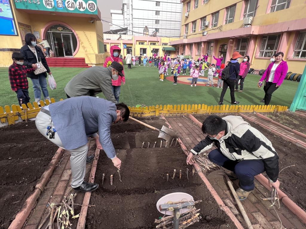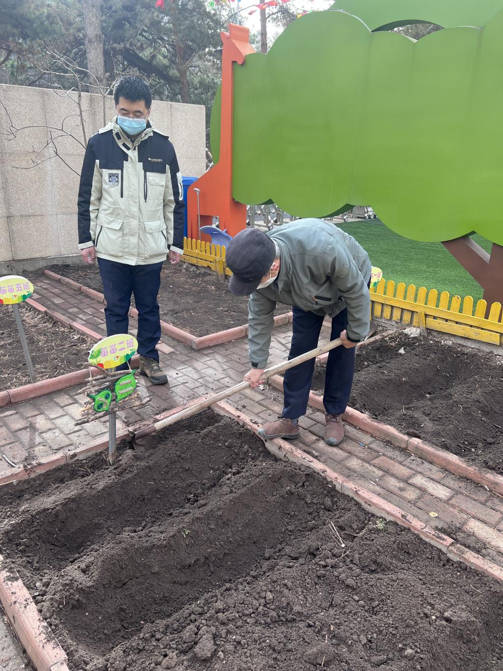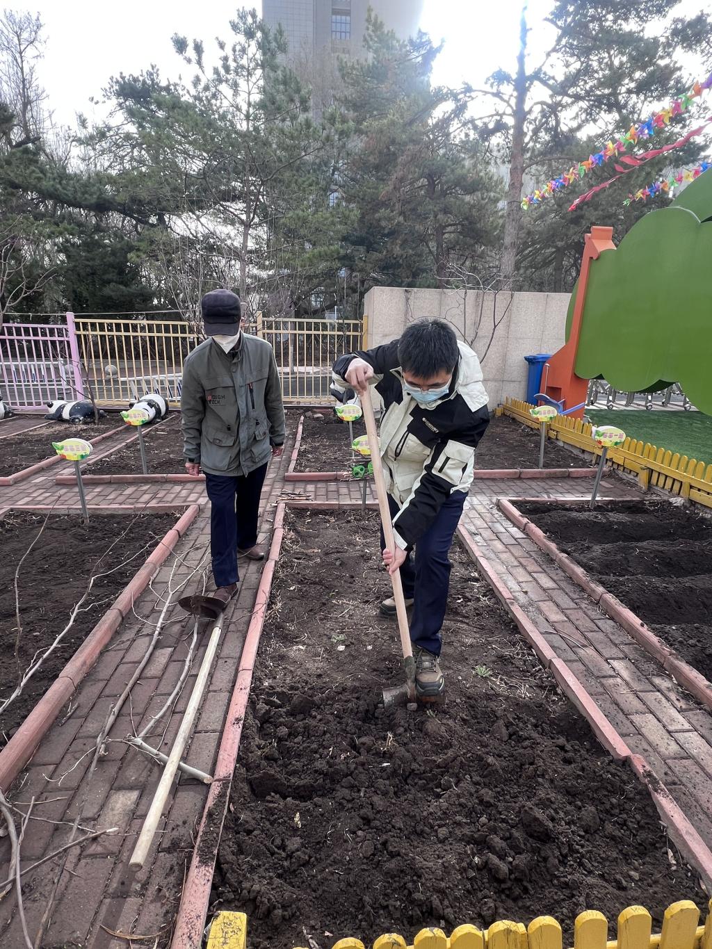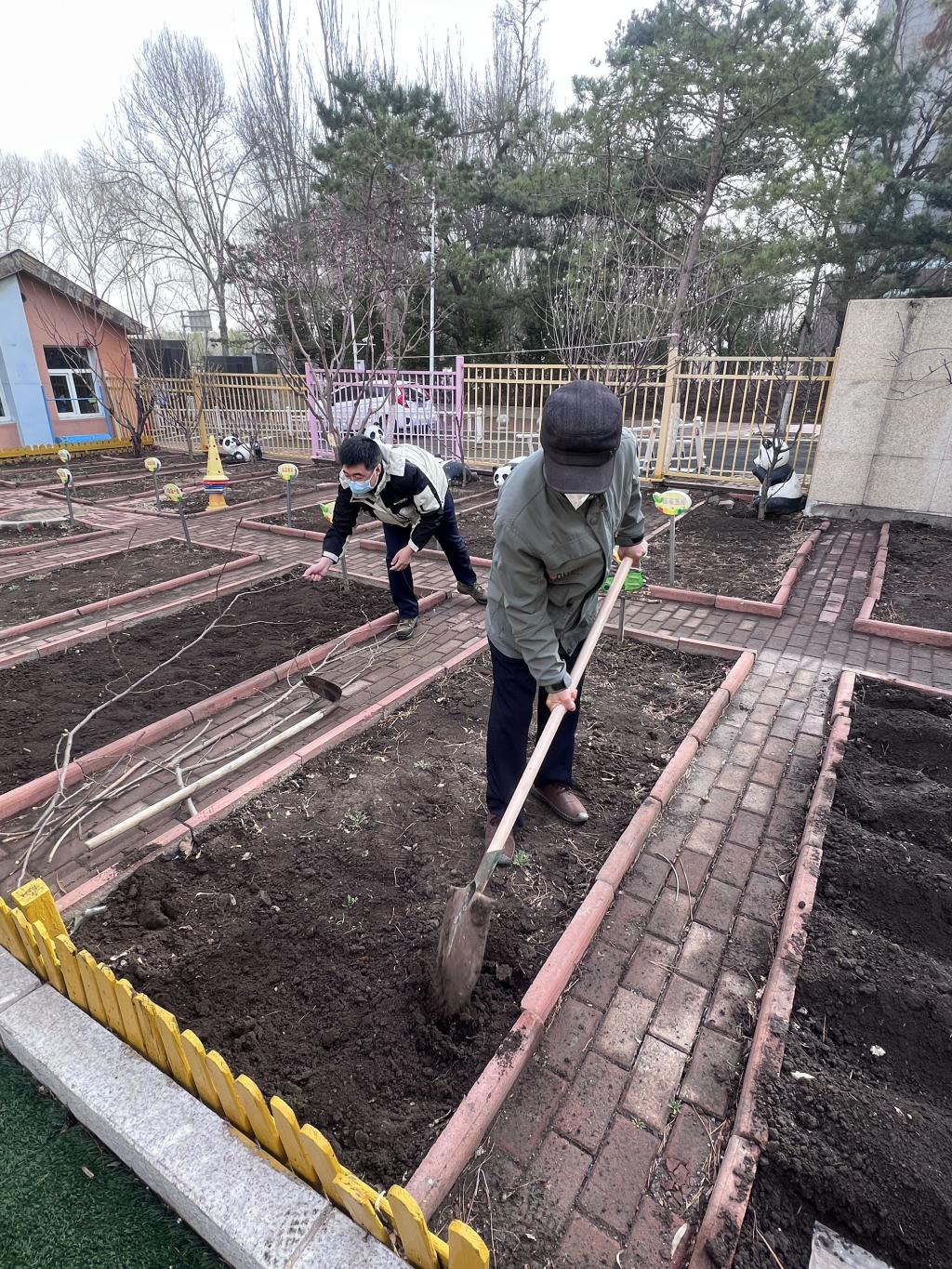 清晨,家长志愿者也早早的来到班级的小菜园,帮助孩子们完成小苗的种植工作,首先家长志愿者们将菜园里清理干净,再将土翻一翻,然后按照小朋友们的想法设计出不同的种植区域,在家长志愿者的大力支持下苗苗二班的小菜园准备工作就做好了。