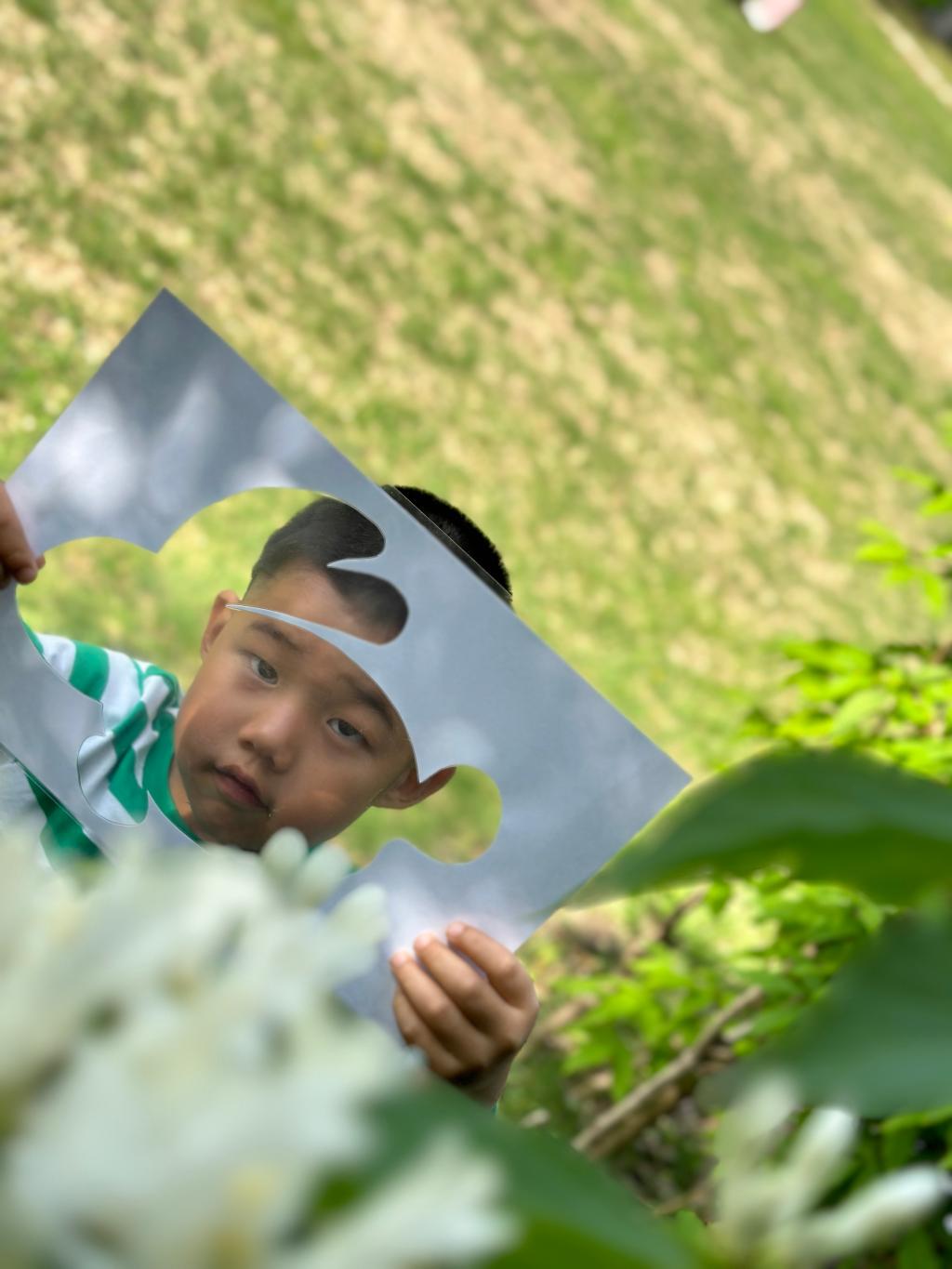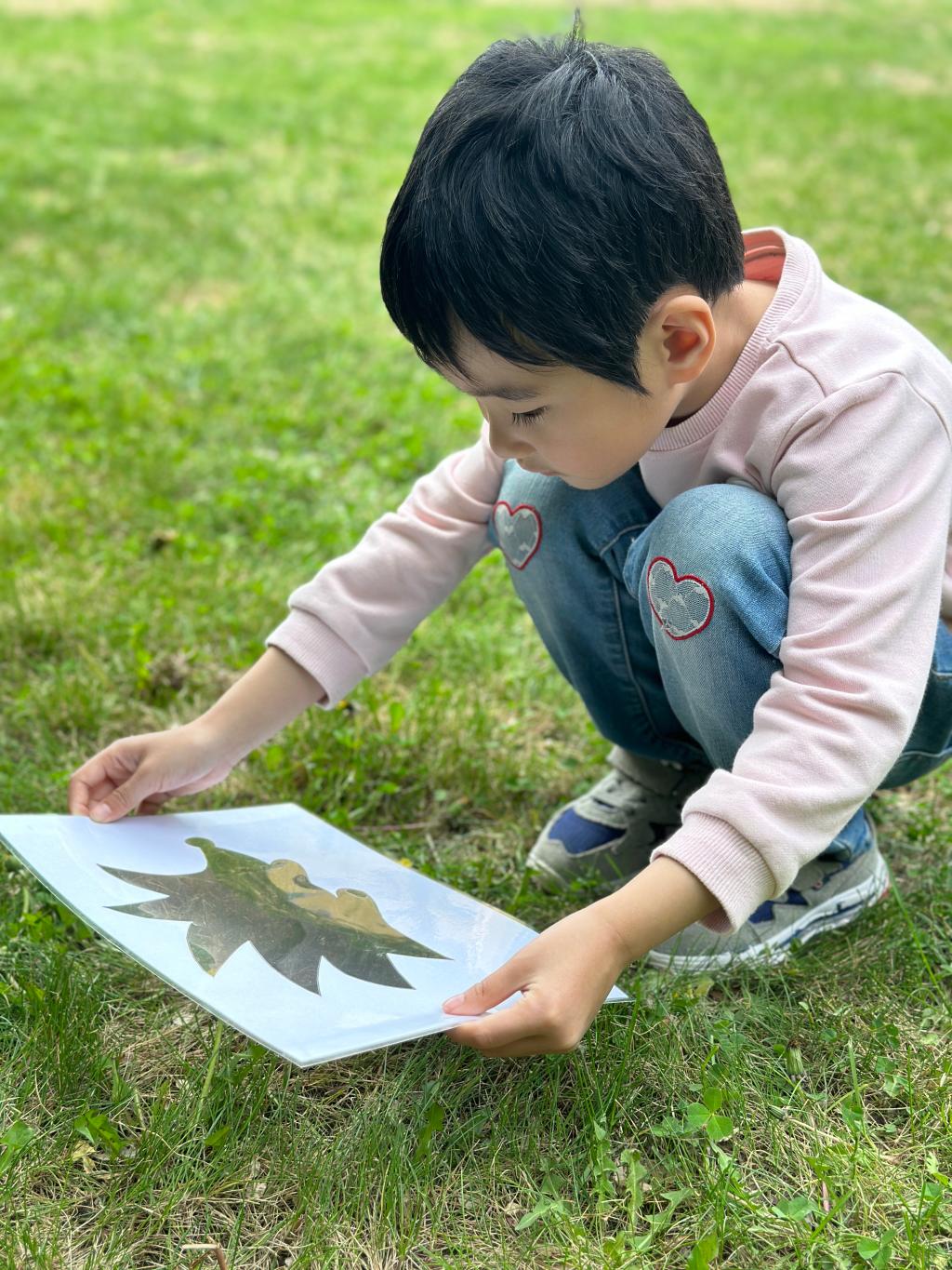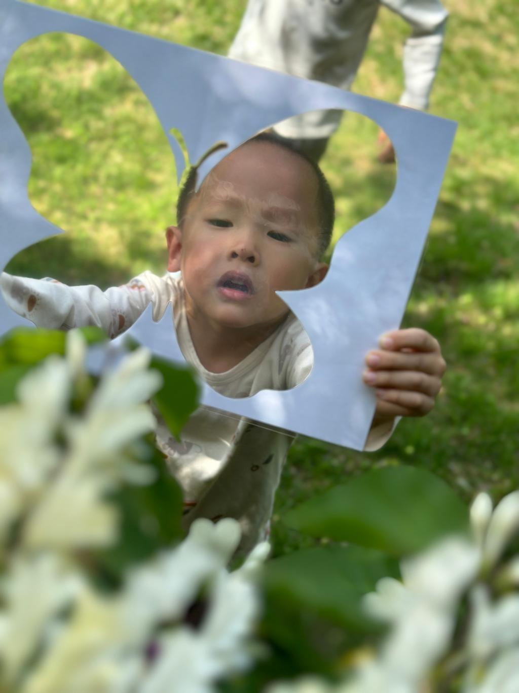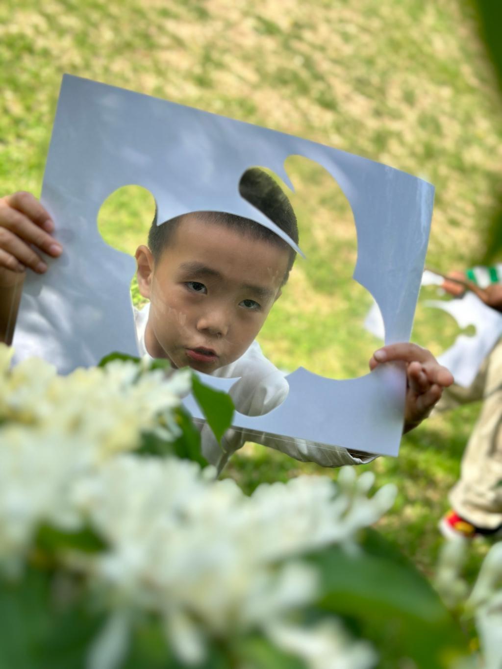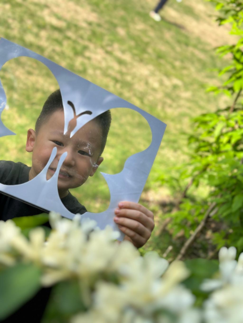 在青青的草地上我们寻找春天,一起抓住春天的小尾巴,手里拿着魔法镜子,一起去发现春天像什么呢?