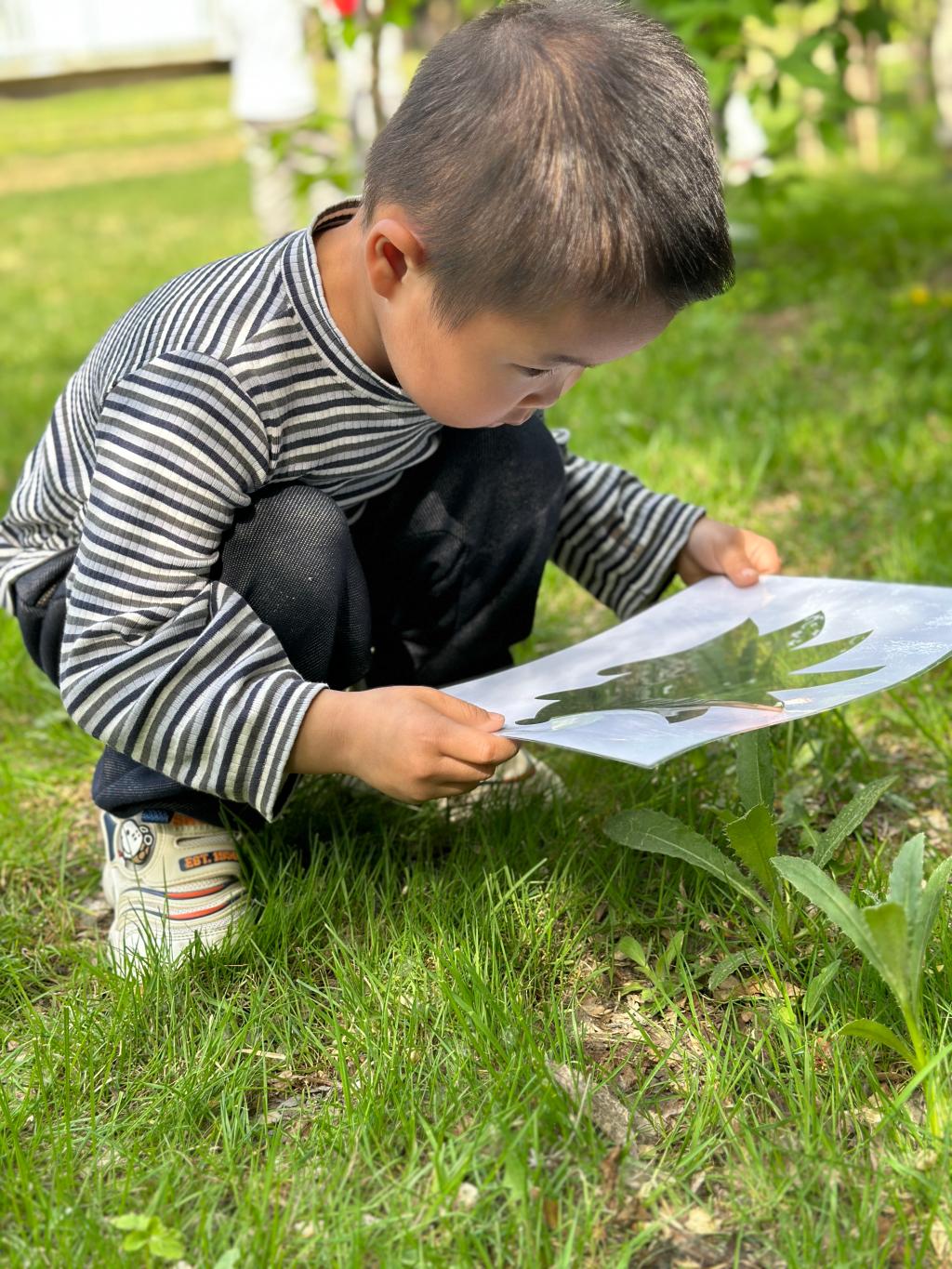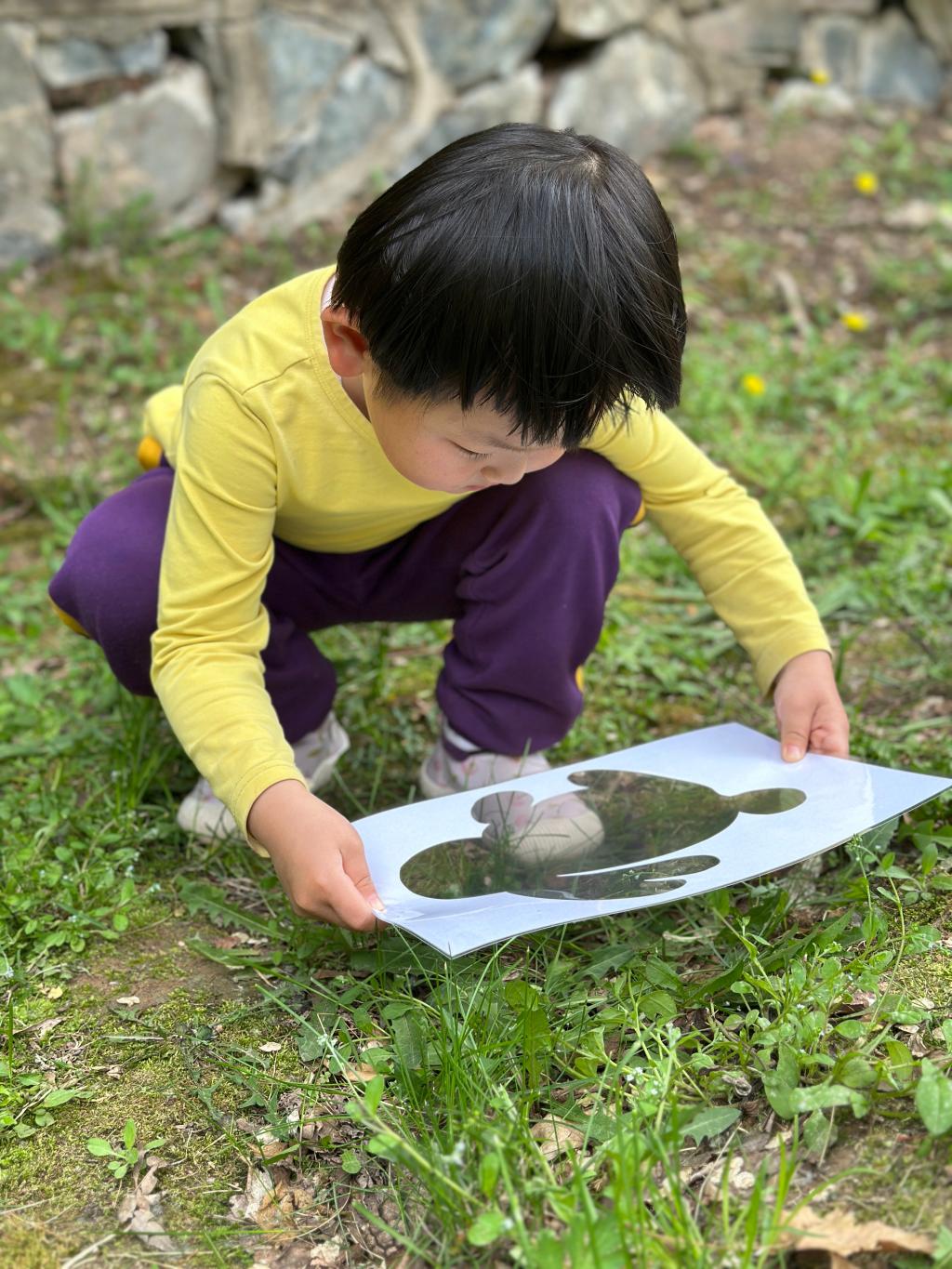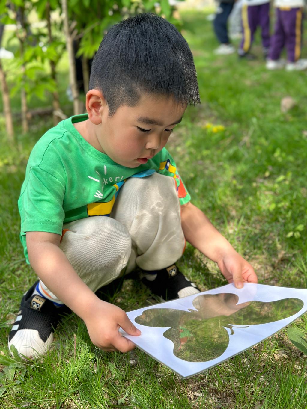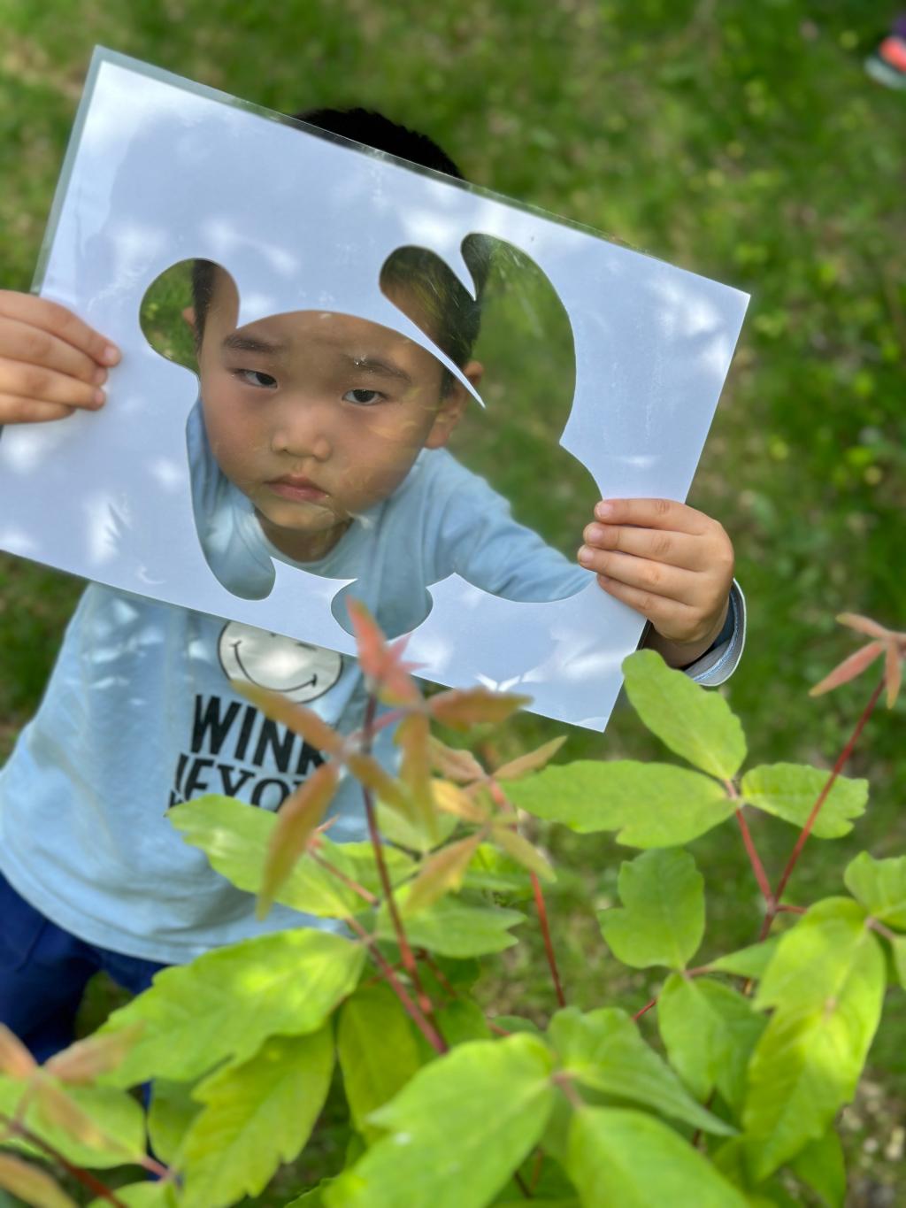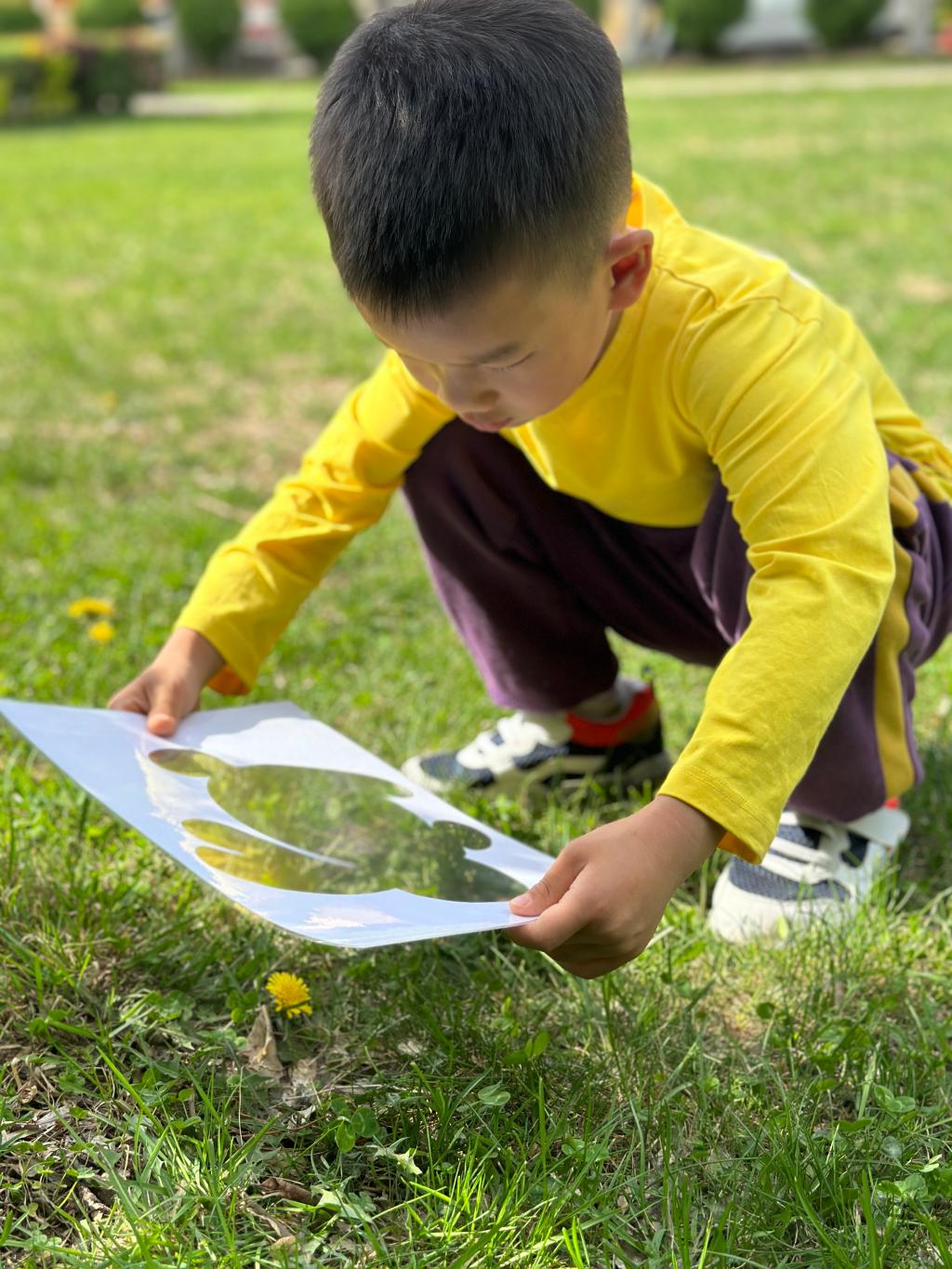 在青青的草地上我们寻找春天,一起抓住春天的小尾巴,手里拿着魔法镜子,一起去发现春天像什么呢?