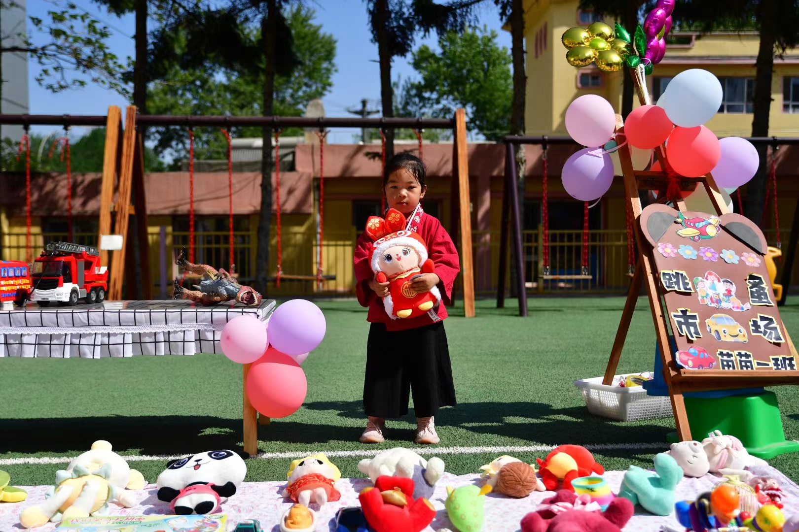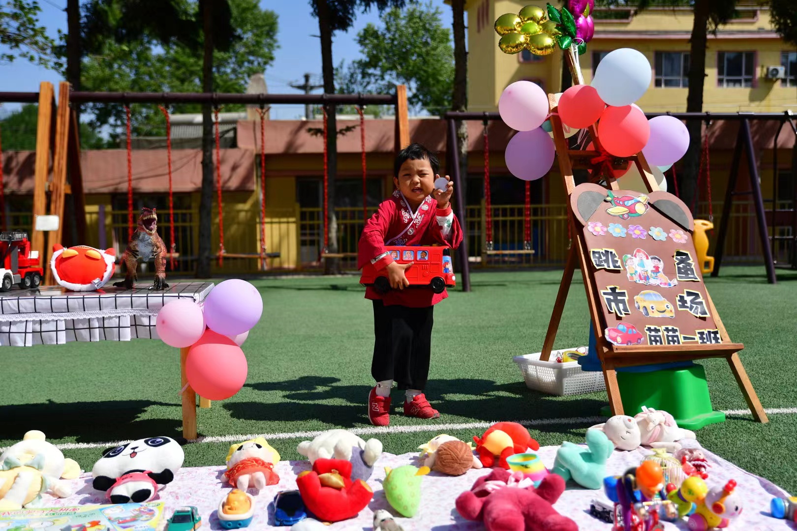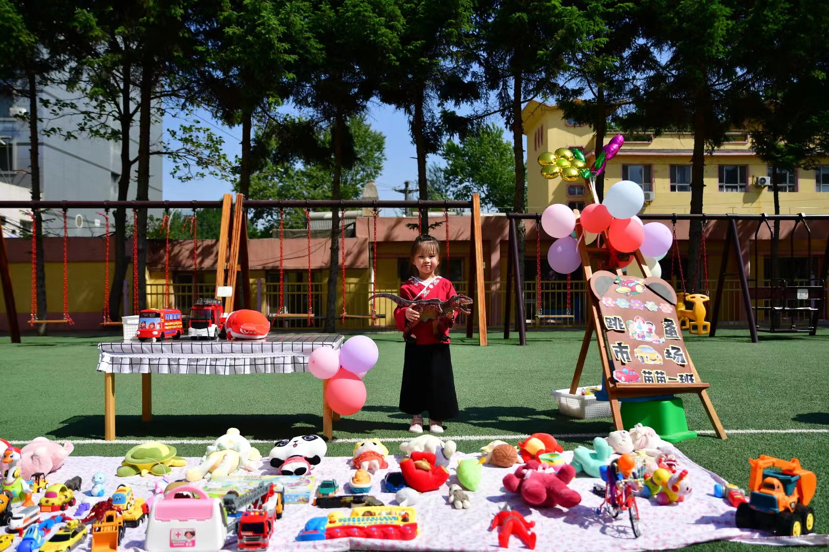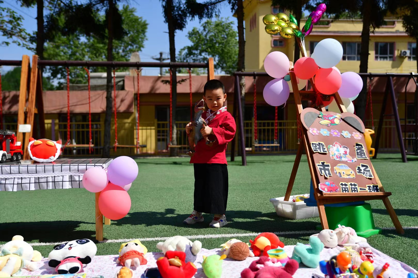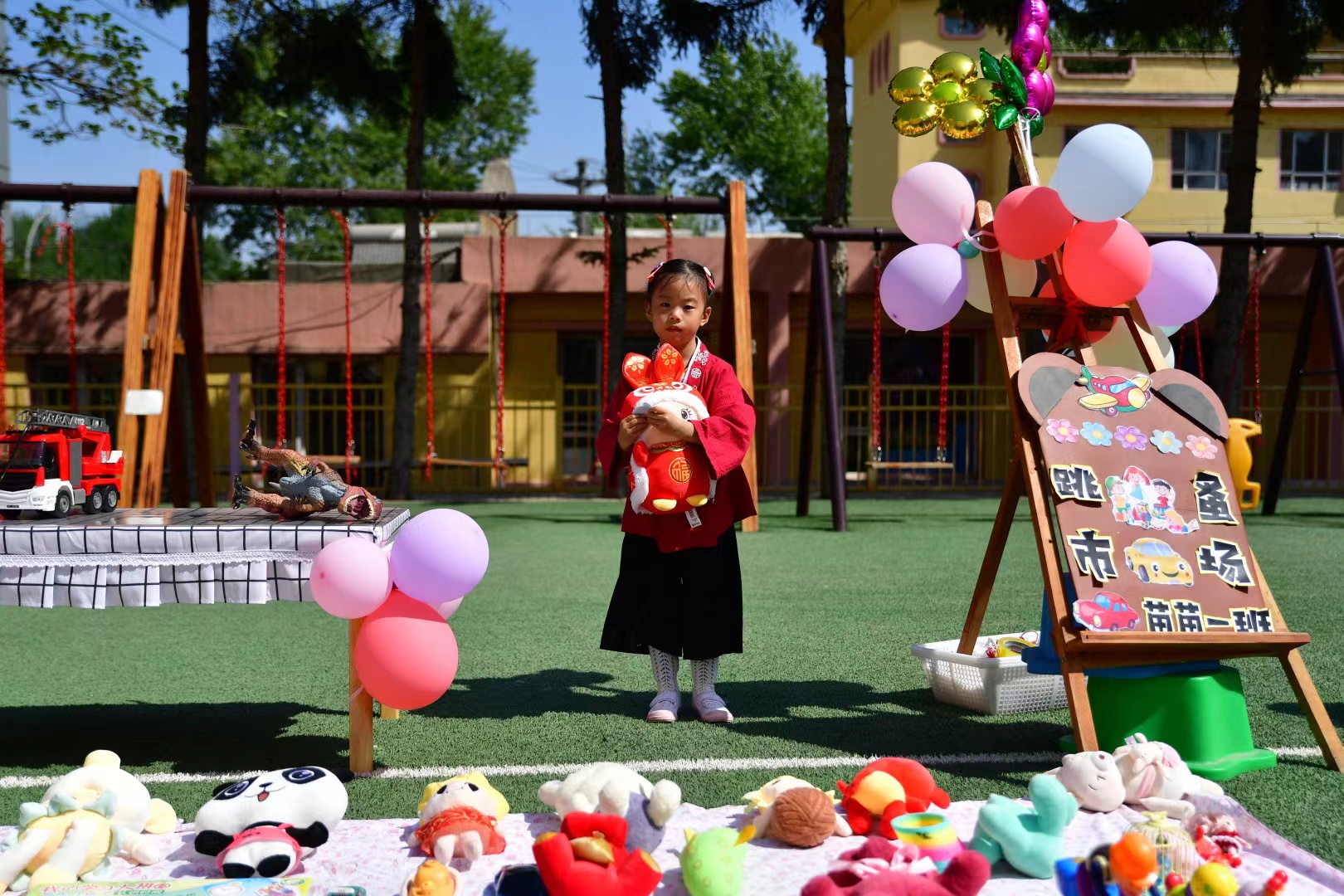操场上人声鼎沸,热闹非凡!跳蚤市场不仅让孩子们自主挑选喜欢的物品,面且在买卖的过程中,也让孩子们进行着职业的体验,同时促进了幼儿社会性发展和语言能力的发展。
