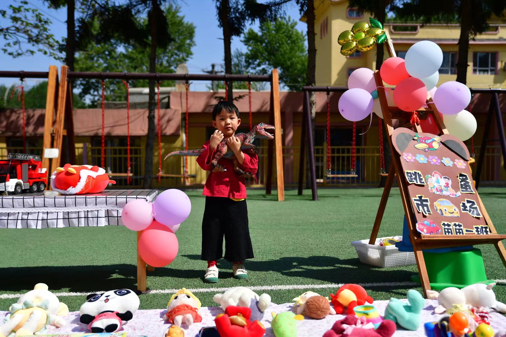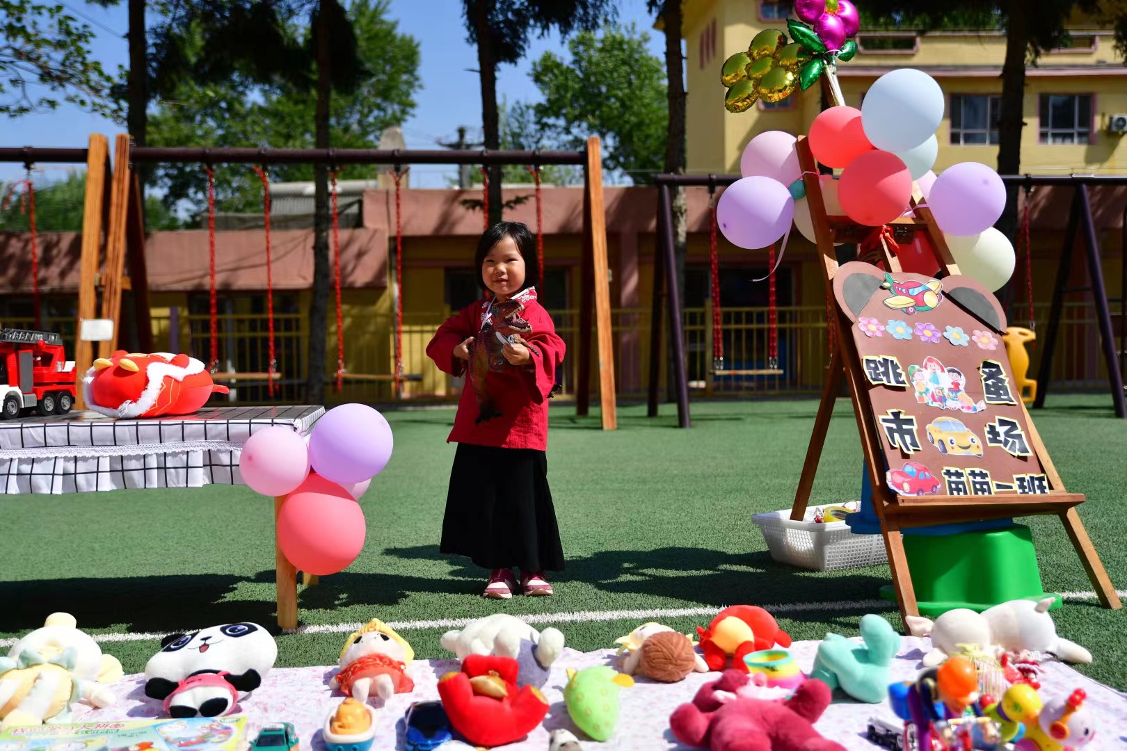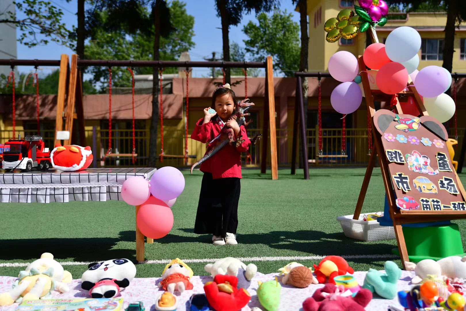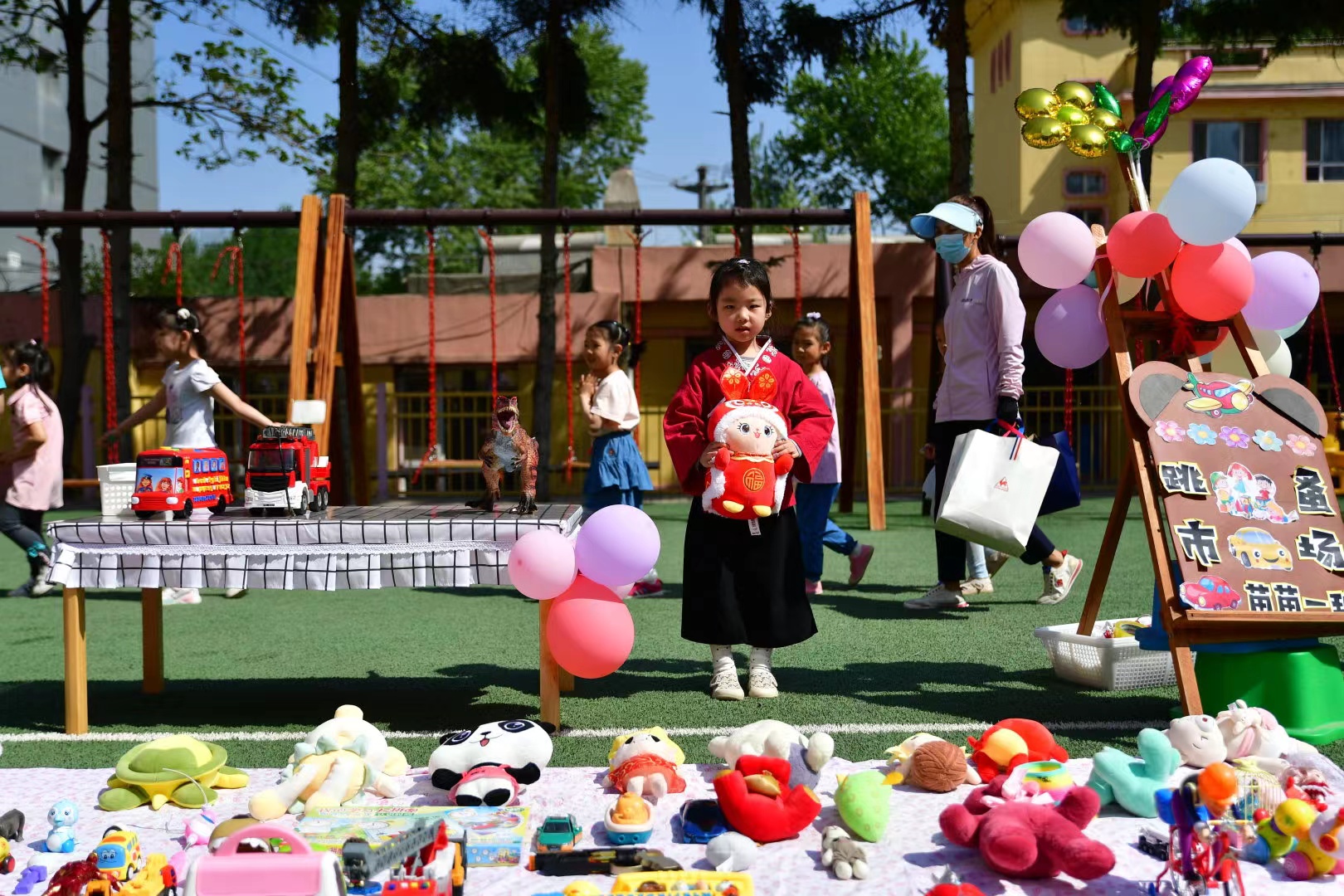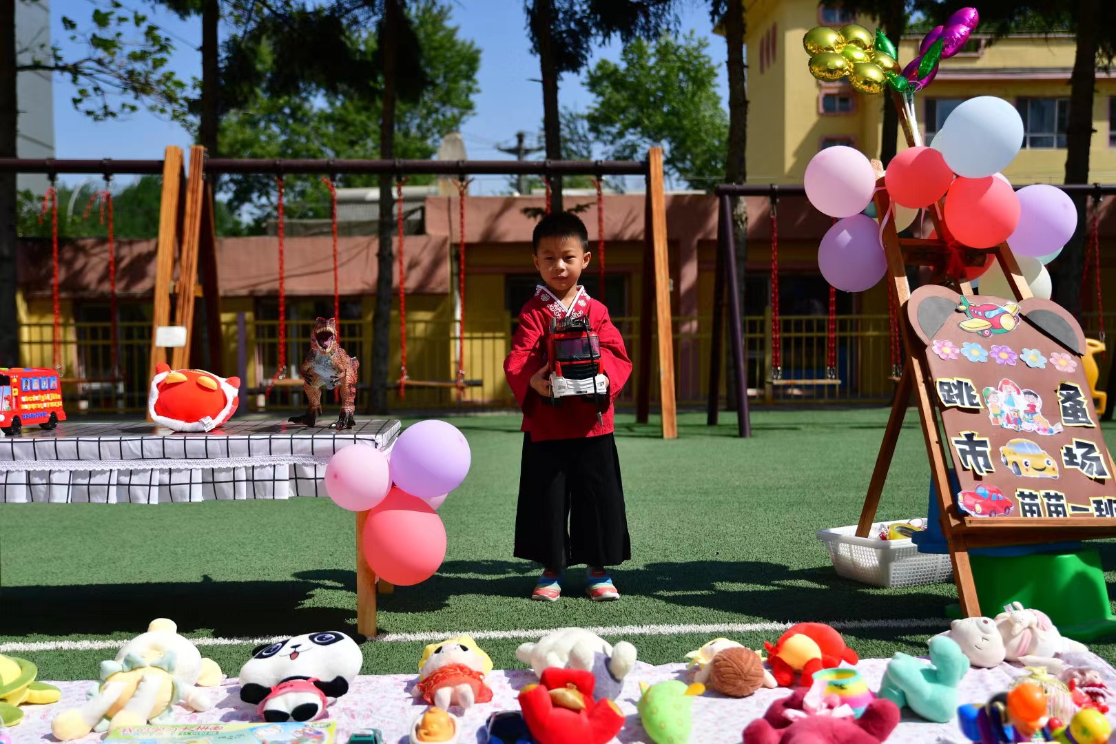 操场上人声鼎沸,热闹非凡!跳蚤市场不仅让孩子们自主挑选喜欢的物品,面且在买卖的过程中,也让孩子们进行着职业的体验,同时促进了幼儿社会性发展和语言能力的发展。