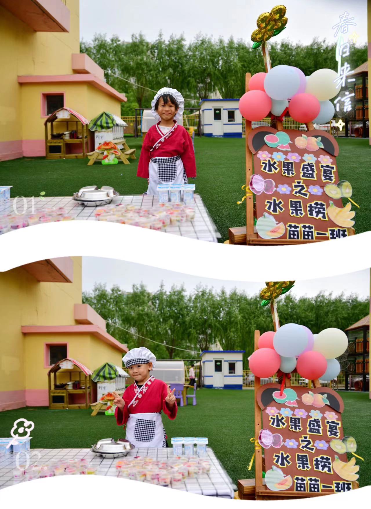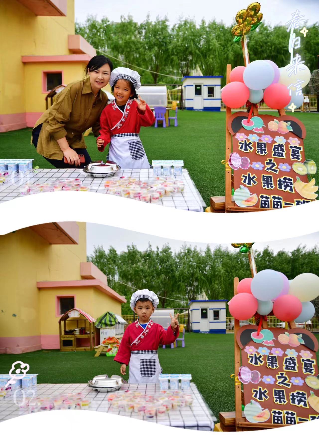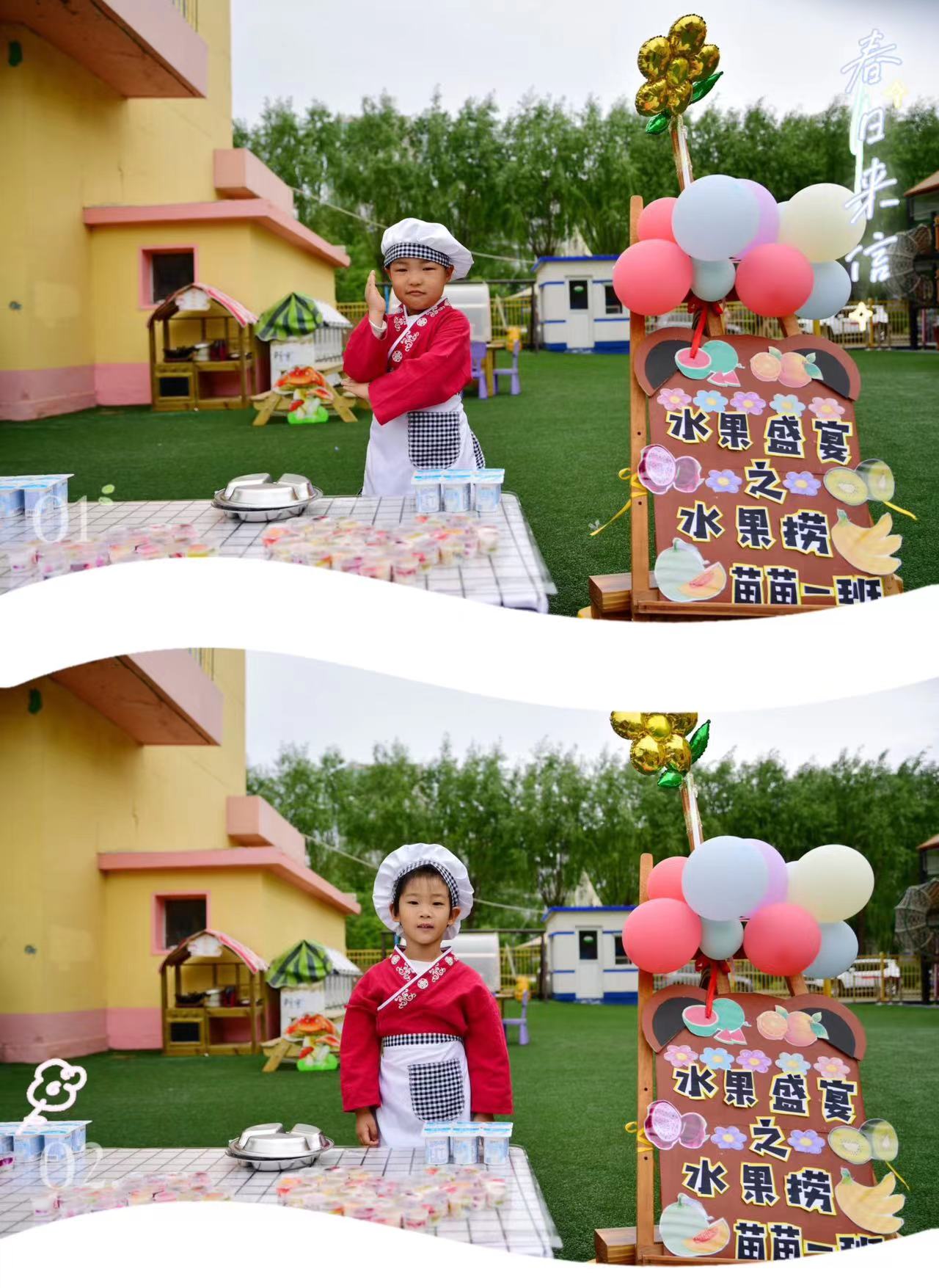 哇!小朋友们喜欢吃水果和喝酸奶呀!那我们苗苗一班美食节就准备水果捞啦!