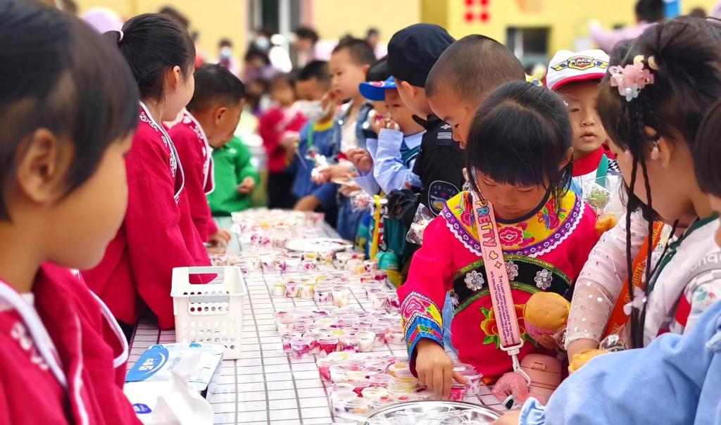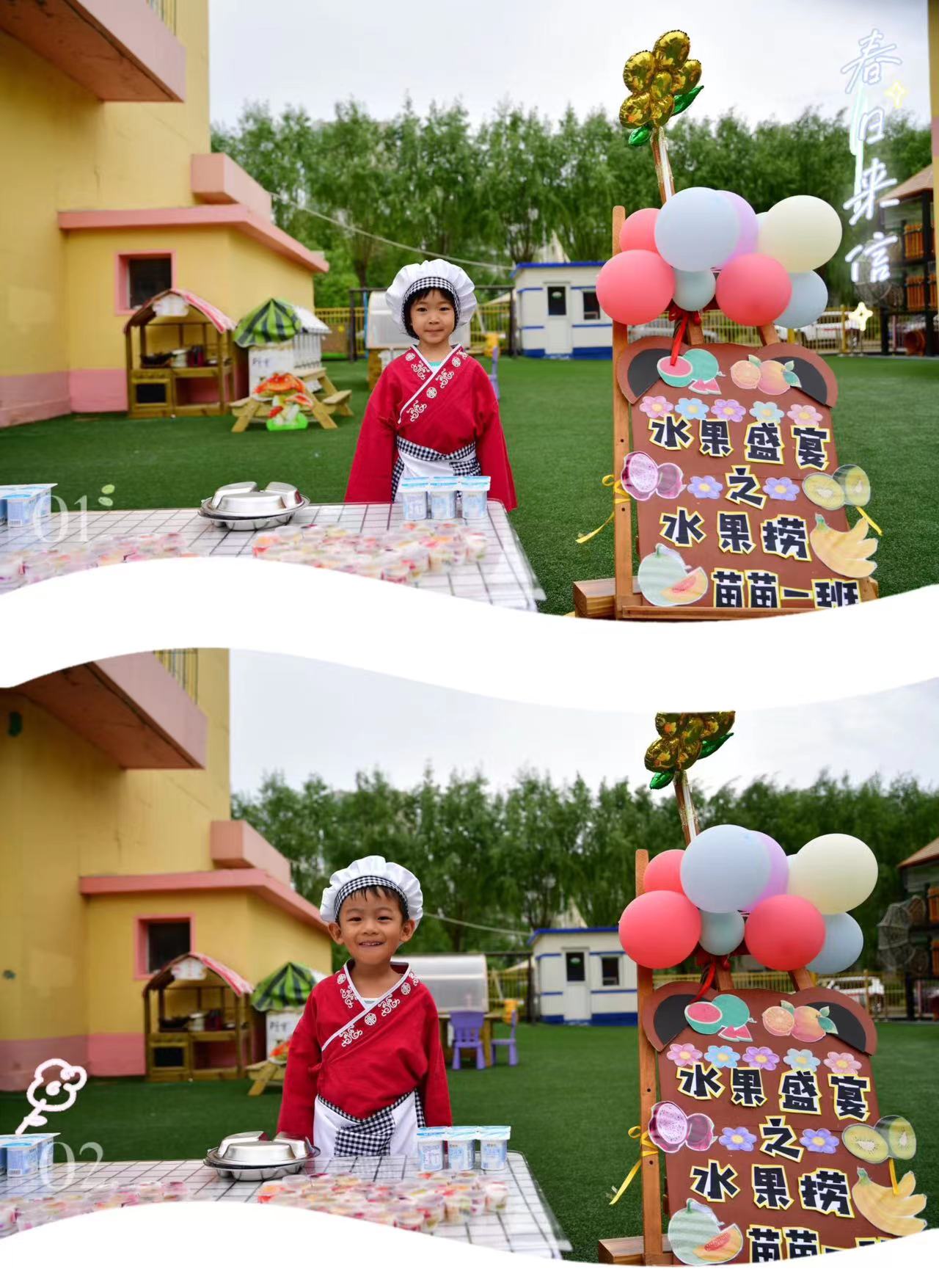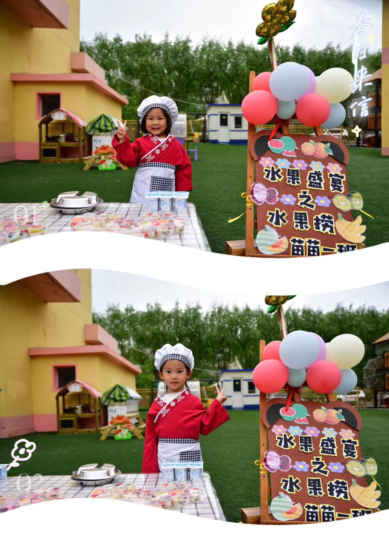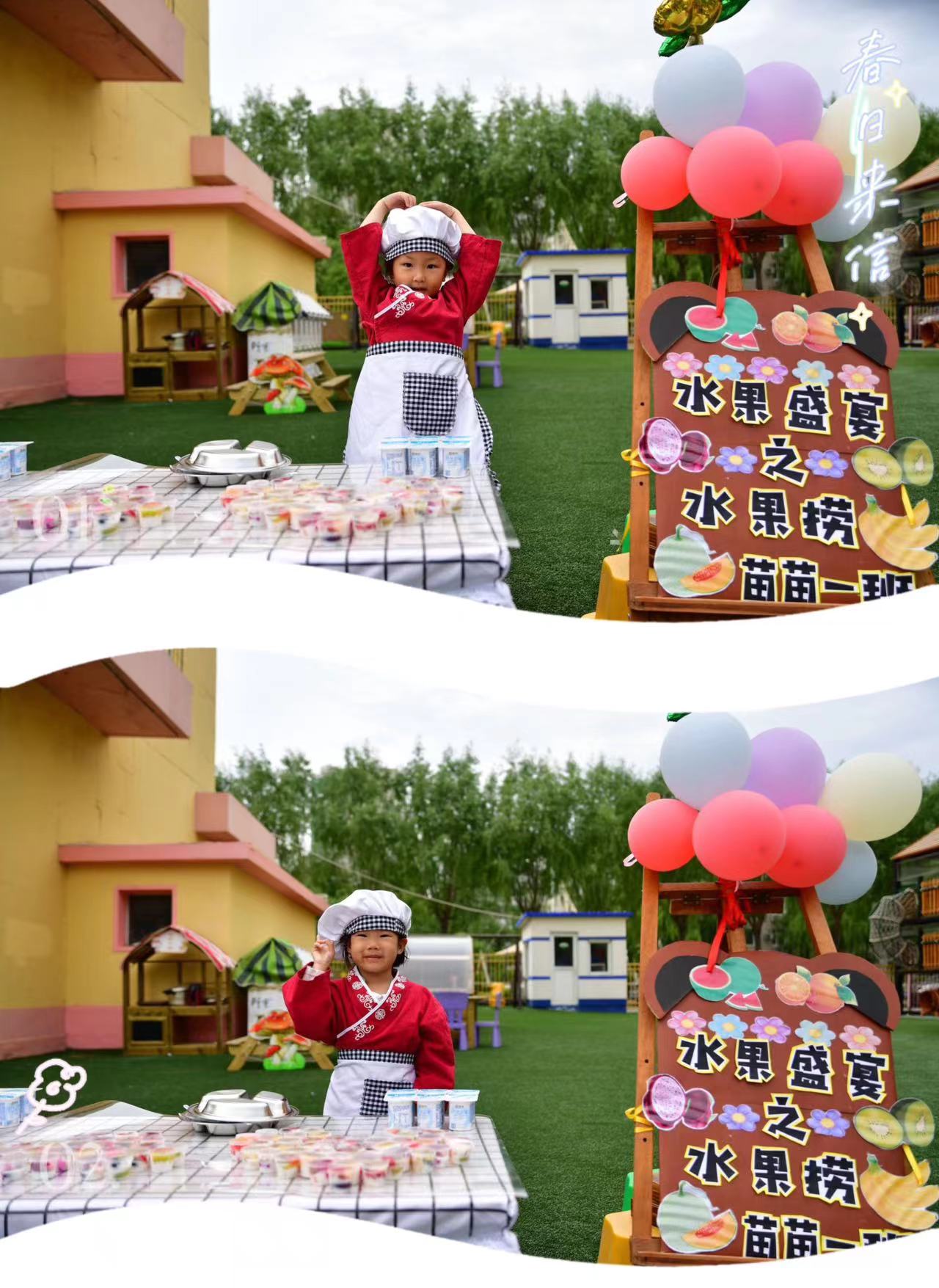 哇!小朋友们喜欢吃水果和喝酸奶呀!那我们苗苗一班美食节就准备水果捞啦!