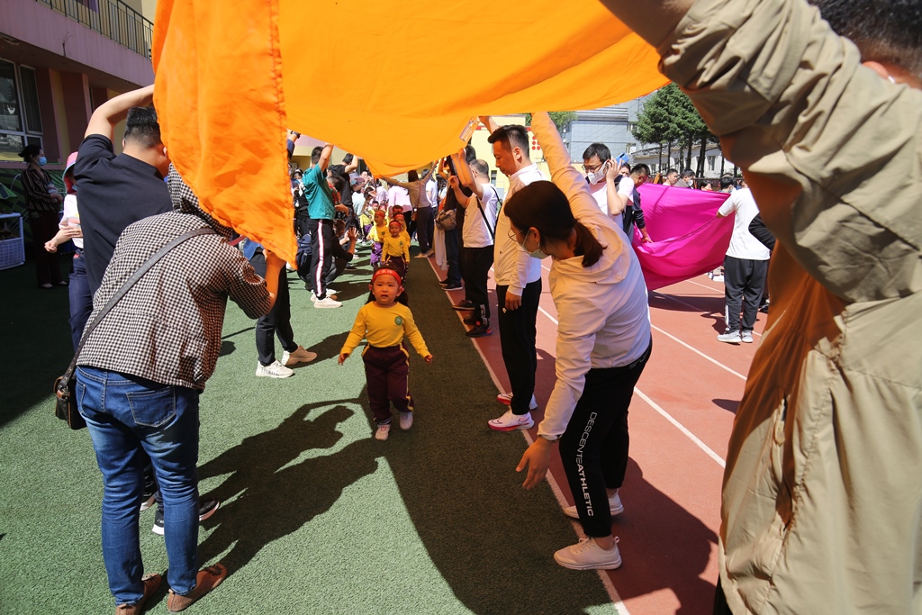 亲子游戏环节,为家长和孩子提供了一个亲子合作和交流的平台,翻山越岭的游戏增强孩子们的身体协调性,提升了他们勇于挑战的意识,孩子们就像一个个小勇士一样勇于翻山越岭。