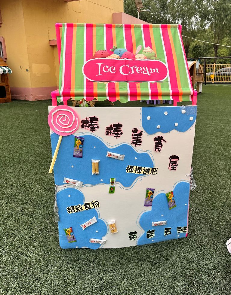 活动前,苗苗五班小朋友和老师们一起讨论着自己喜欢的食物。奶酪棒、山楂棒、棒棒糖等都是苗苗五班小朋友喜欢的食物,我们一起将班级的美食主题确定为“棒棒主题”。苗苗五班小朋友们给摊位起名叫“棒棒美食屋”。