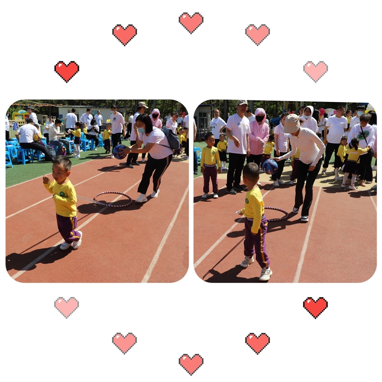 孩子们是爸爸妈妈的宝贝,爸爸妈妈是孩子们的阳光。平时爸爸妈妈们要忙着上班,忙碌着家务,跟孩子们一起玩耍的机会并不是那么多。这是宝贝们第一次的运动会,在这次运动会中爸爸妈妈可以和宝贝一起玩耍,一起交流,一起锻炼!真是太棒了!