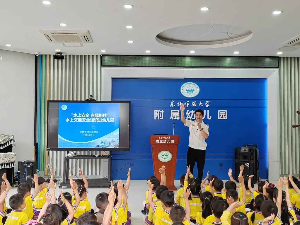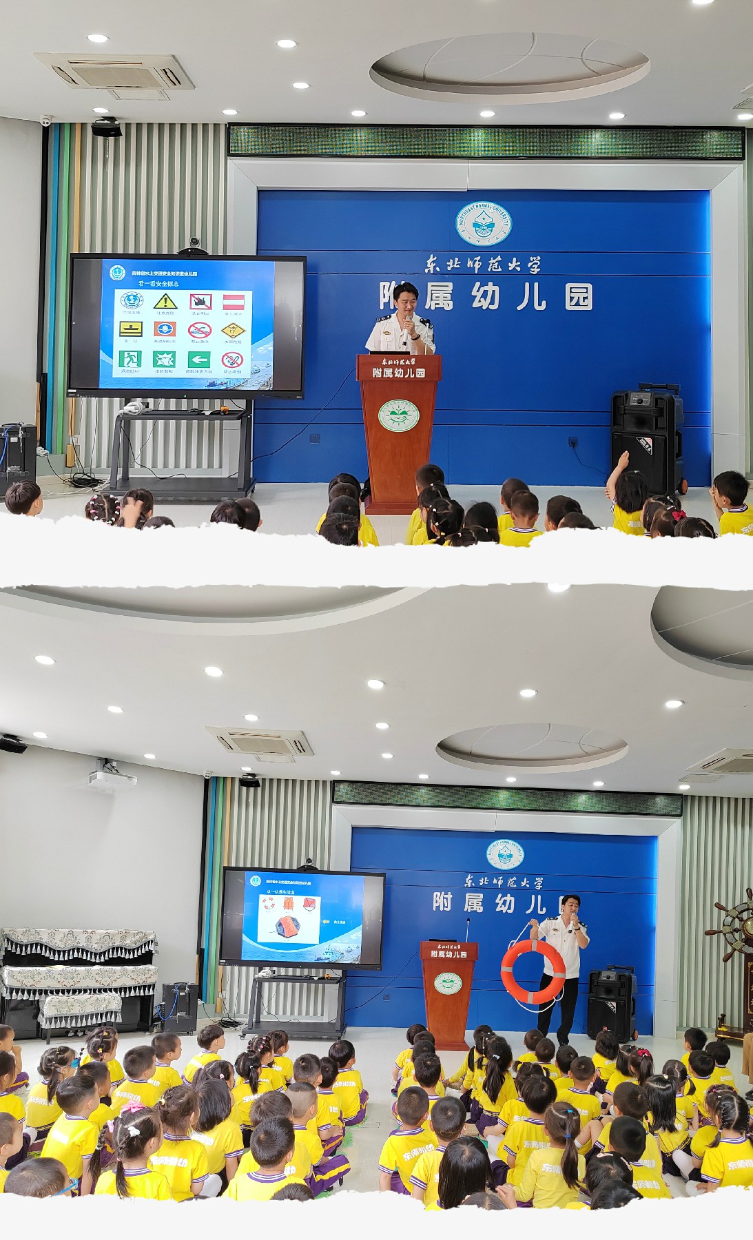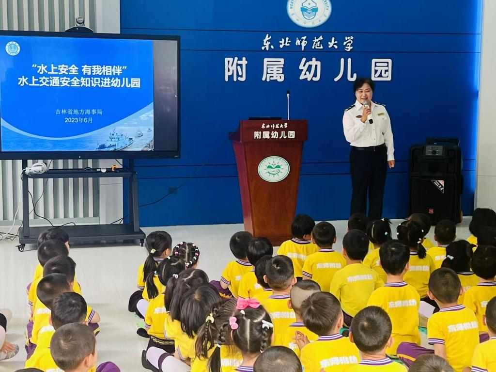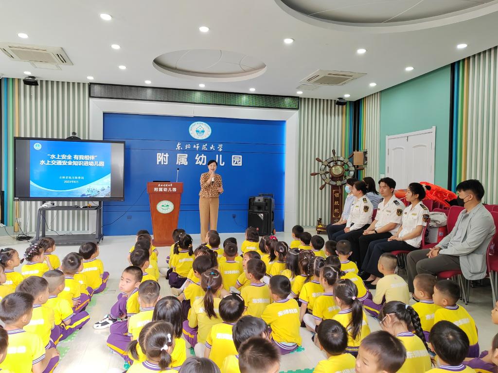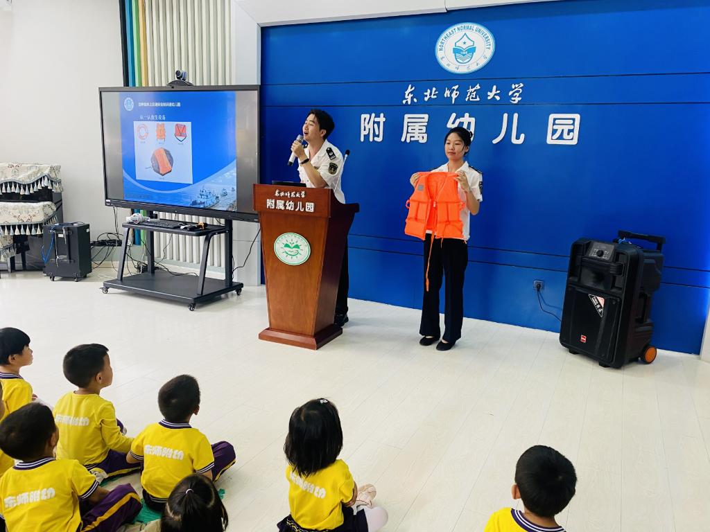 夏日来临,水上活动人数日渐增加,为广泛传播水上安全知识,增强孩子们水上安全意识和防溺水技能,苗苗组特别邀请到苗苗一班刘玳慈小朋友的奶奶,吉林省地方海事局副局长姜影作为家长助教带领海事工作人员来到幼儿园展开了别开生面的幼儿水上安全教育活动。