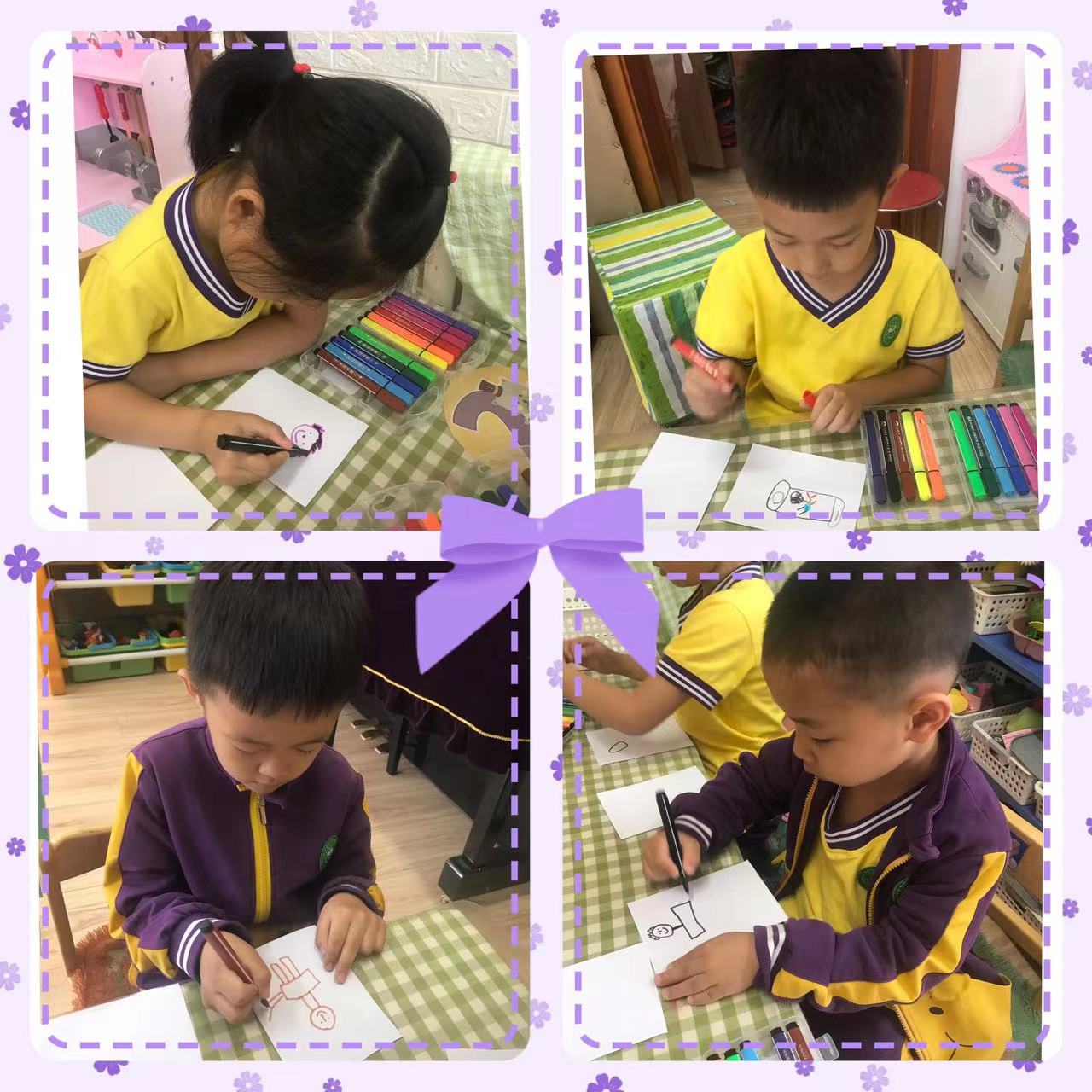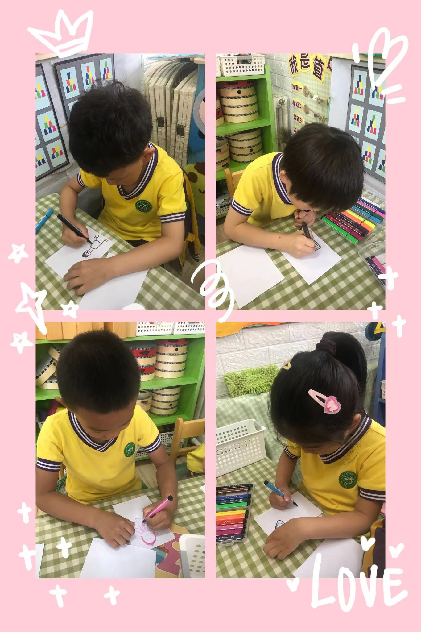 宝贝们用自己的一双小巧手给爸爸画了一张漂亮的肖像画,看这一个个认真制作的小模样,爸爸们都拭目以待吧!