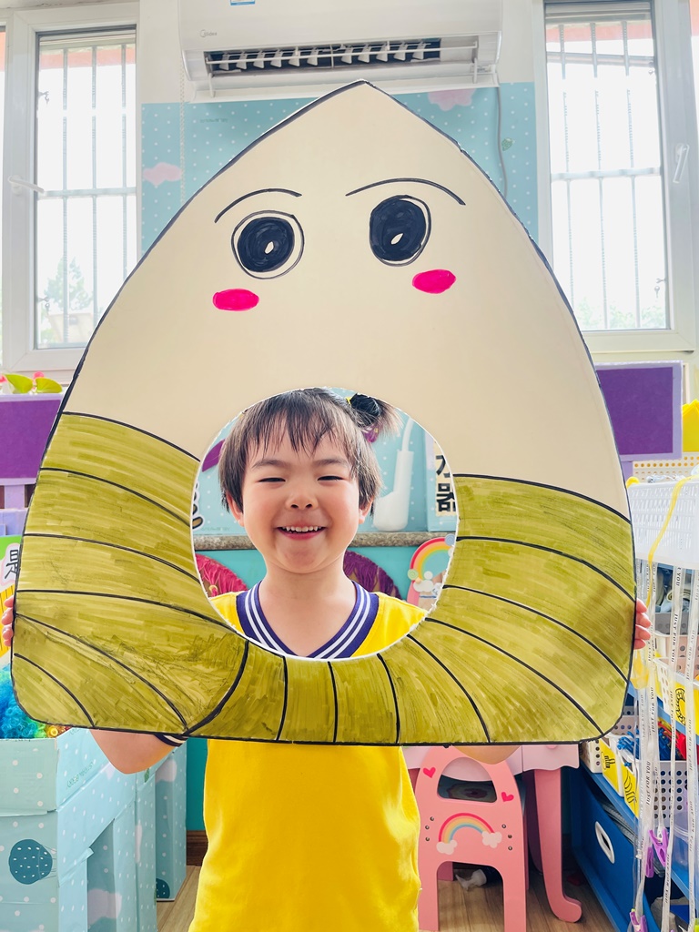 涂涂画画之后小朋友一起与可爱的粽子合影。香香的粽子不仅好吃,也让宝贝们将“端午节”的传统文化记在心里。