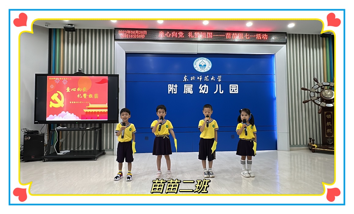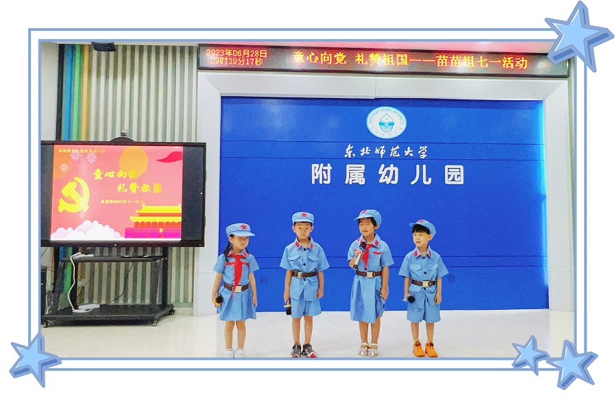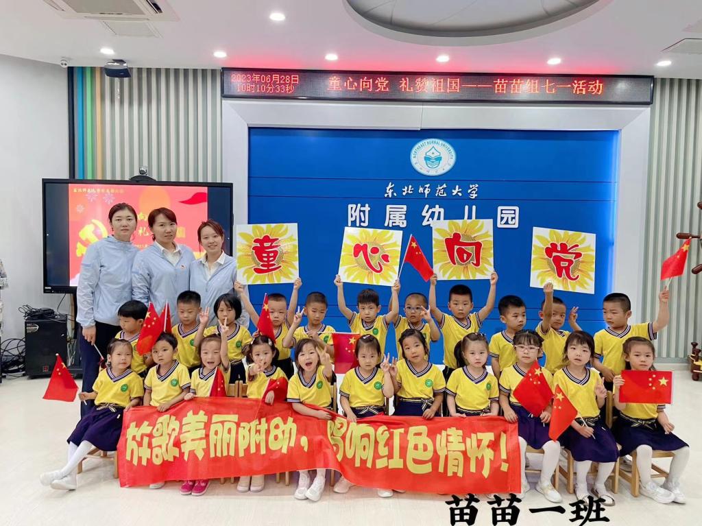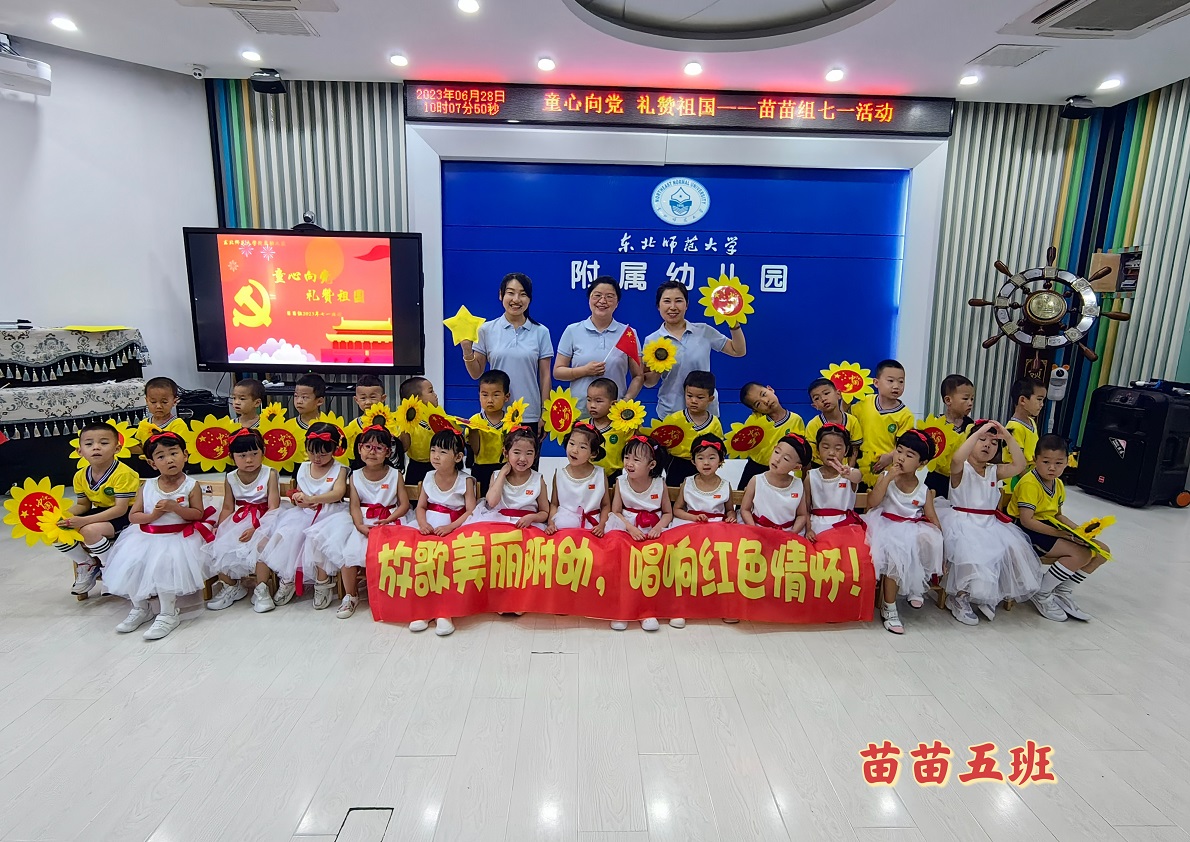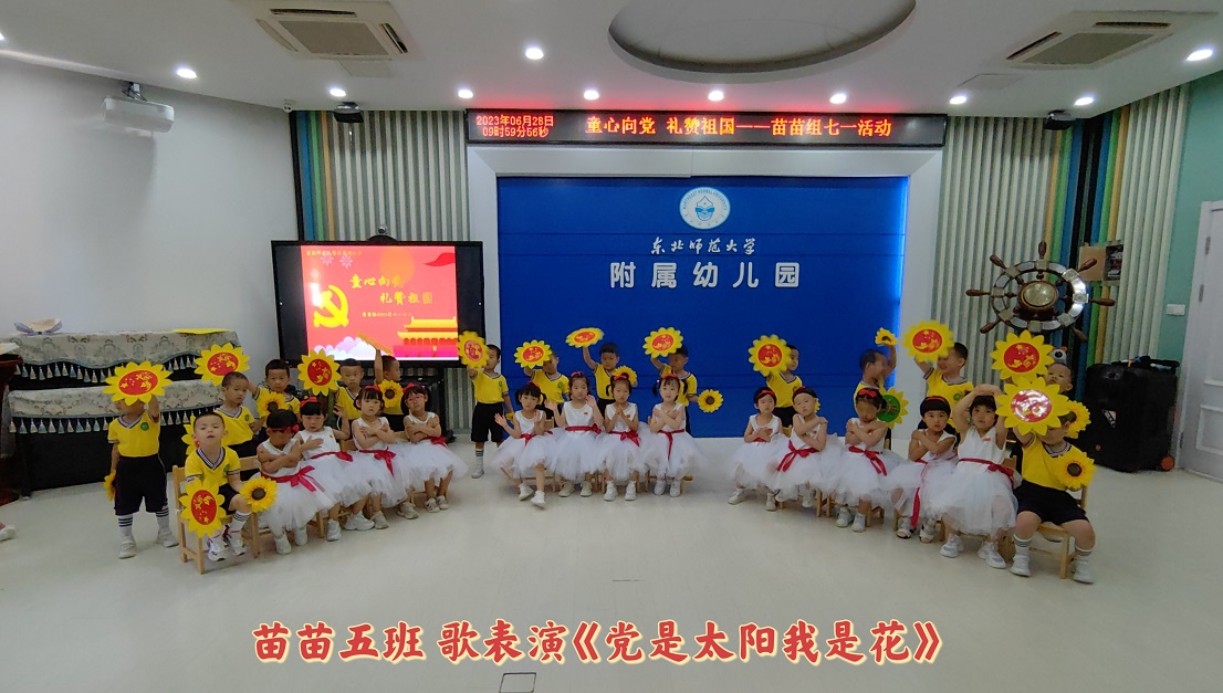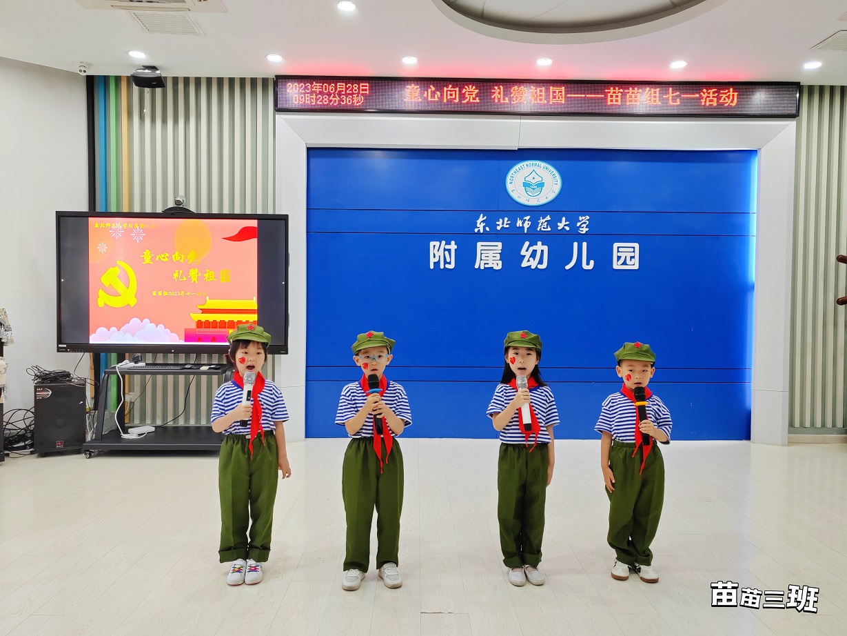 为庆祝中国共产党成立102周年,传承红色基因,厚植爱国情怀,教育小朋友们从小爱党、爱祖国、爱家乡,2023年6月28日上午,苗苗组小朋友开展了“童心向党,礼赞祖国”红歌会活动。小朋友们用最响亮的歌声唱响红歌,用最优美的旋律重现红色经典。