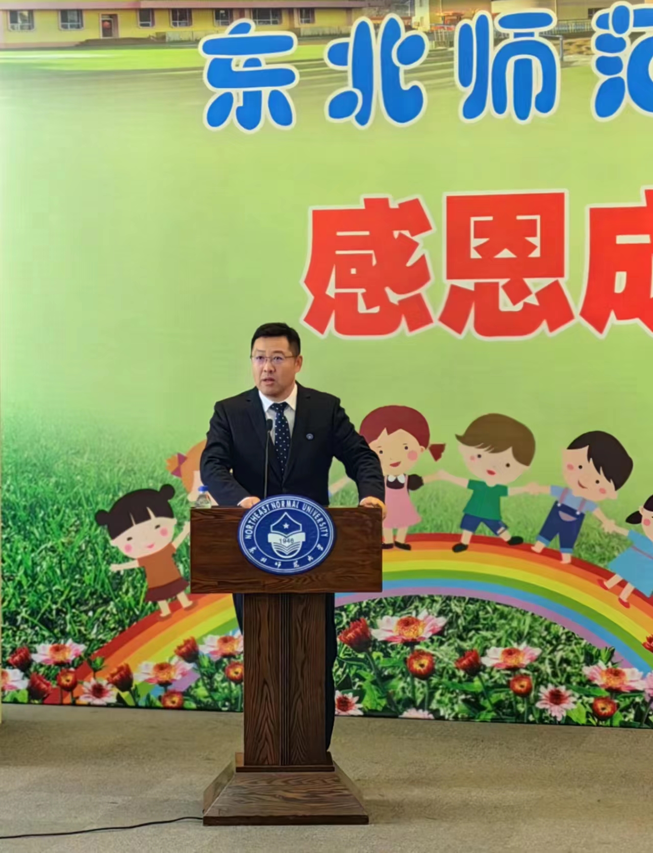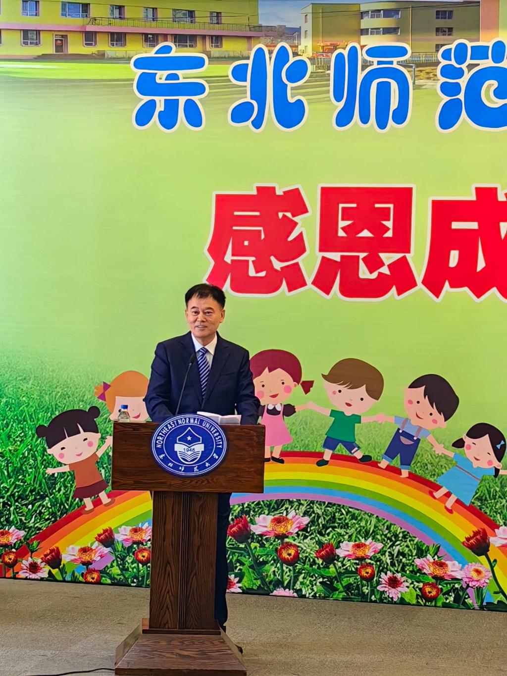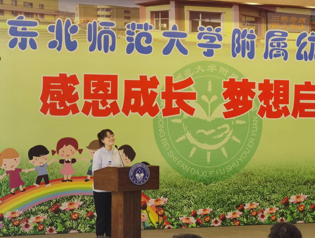 果果二班战可诺爸爸、后勤保障部副部长战红岩代表全体家长向东师附幼辛勤付出、精心育人的各位领导、老师表示衷心的感谢!他谈到,人生百年,立于幼学。小朋友们在这人生启蒙的四年里,通过学习和体验丰富多彩的活动,不断感受成功的喜悦,持续丰富情感世界,成为东师附幼的“小绅士、小淑女”。最后,他也为幼儿园和教师送上祝福,也祝福小朋友们在未来成长道路上一帆风顺、茁壮成长、健康快乐!祝愿亲爱的家长朋友携手共进、同心同行,共筑孩子们美好的明天!