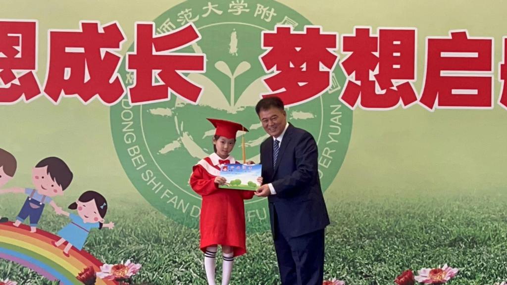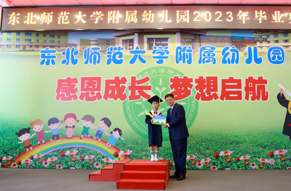在这难忘的时刻,缴润凯园长为孩子们送上了毕业的祝福。他表示,四年间,时光匆匆已过,现在定睛细看,小朋友们已今非昔比,判若两人。四年中,幼儿园秉承“三性并茂、以人为本”的理念,为孩子们提供了自由成长的空间;打造求实、求变、和谐公正的园风文化,为小朋友们提供了快乐的成长过程。凝练创造的教育特色,为小朋友们播撒了科学的成长雨露。通过“精心备、耐心教、细心差、全心育”的教风,培养了小朋友们“有兴趣、能专注、喜探究、愿合作”的品质。启动“小绅士、小淑女”的培养工程,为小朋友们未来的成长注入了坚实的成长力量。最后,缴园长也感谢小朋友们的存在使幼儿园更加精彩;小朋友们的未来让幼儿园充满无限的期待;感谢老师们的付出收获了孩子们幸福的成长;老师们的爱心奠定了孩子们的未来绽放。最后,缴园长也感谢家长们的支持给了幼儿园无穷的力量,园家的合作共育了祖国未来的栋梁,并祝毕业典礼圆满成功。