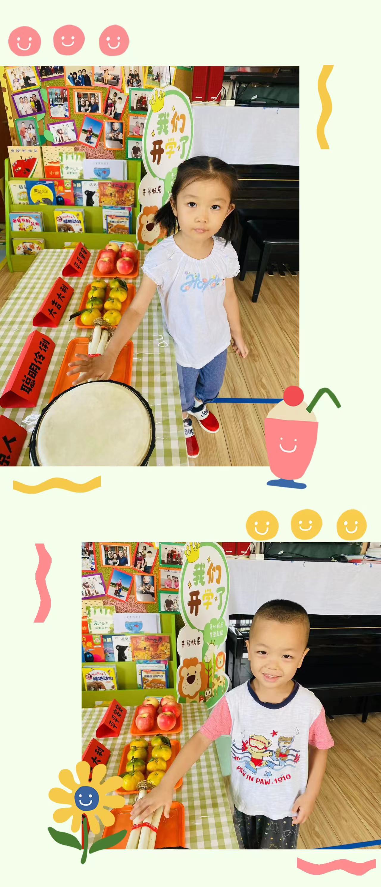 在开学的第一天,我们为宝贝们准备一个别具一格的“开学仪式”。