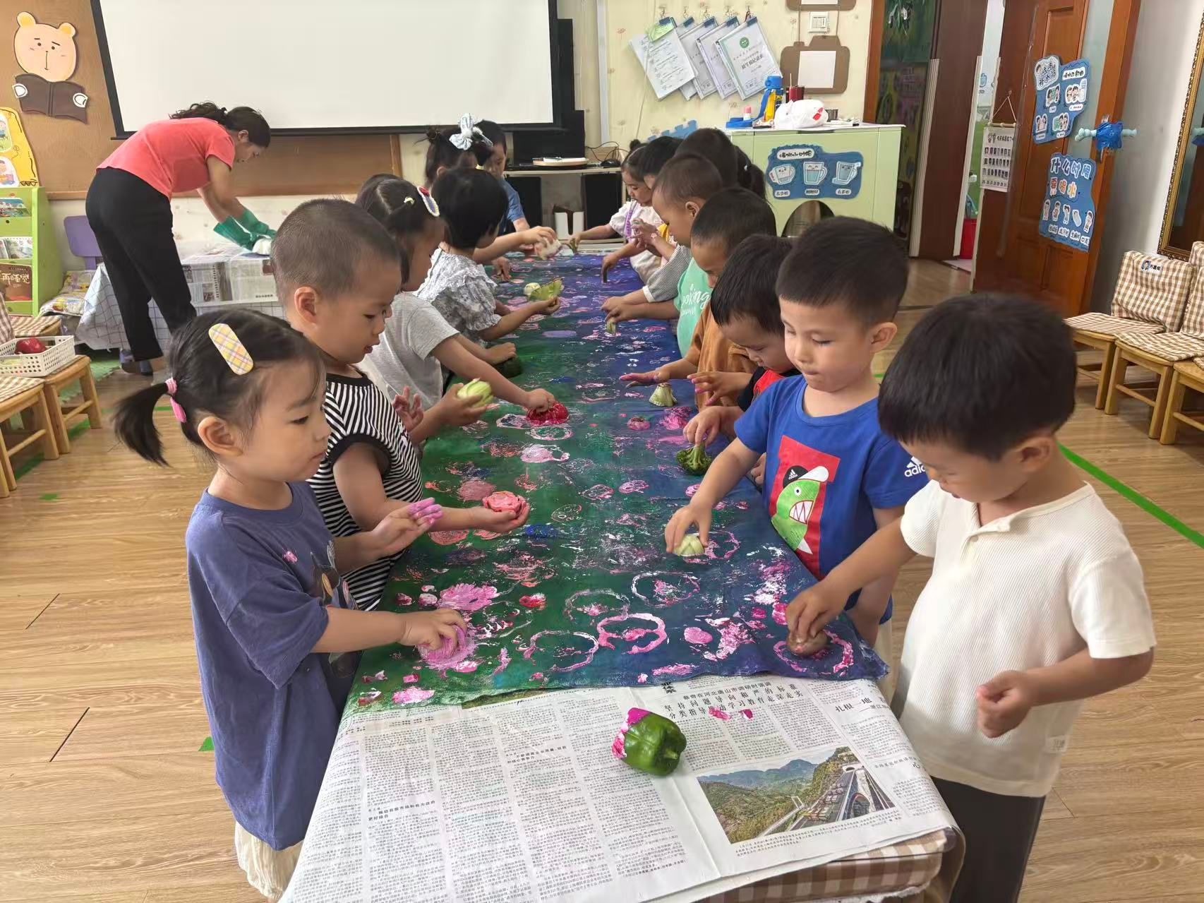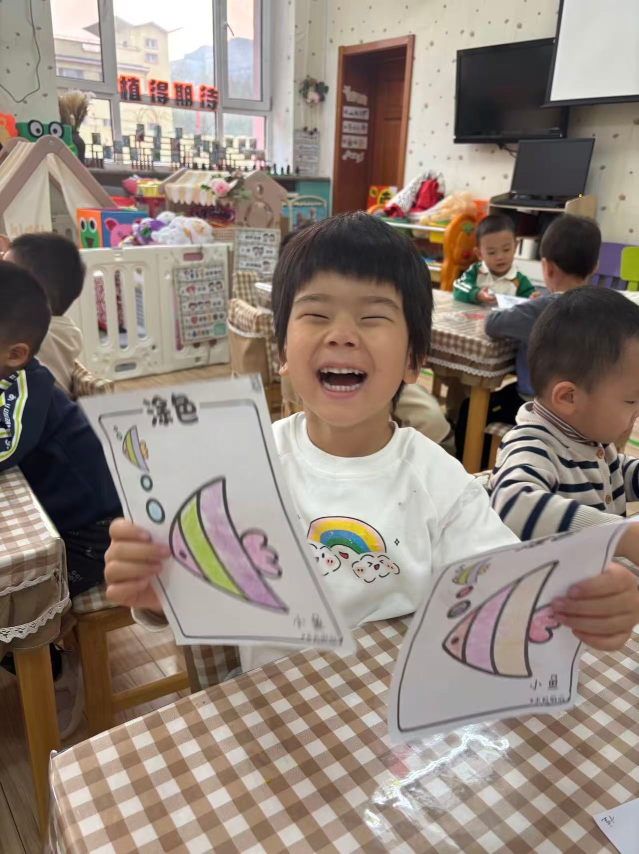 美术活动很少是绝对的“单人作业”。当孩子们围坐在同一张桌子旁,共享一盒画笔、一盘颜料时,社交互动便自然发生。“请问可以给我那支红色的蜡块吗?”“我们交换一下颜色好吗?”“你的画真漂亮!”——这些简单的对话,正是孩子们在学习协商、等待、分享与赞美。合作完成一幅集体画时,他们需要观察同伴的作品,思考如何让自己的部分与整体和谐,也在活动中初步理解了“合作”的含义。作品完成后的分享环节,老师鼓励孩子们大胆介绍自己的创作,并学习倾听与欣赏他人的作品,这也培养孩子们真诚赞美、虚心接受建议的豁达心态。