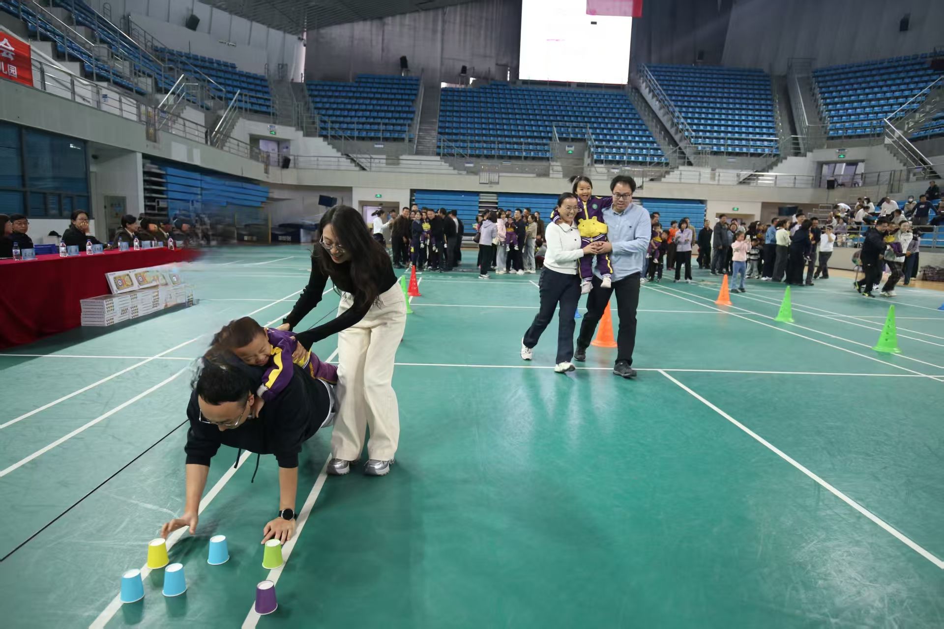 在集体奏唱国歌后,四个年级组分别开展了幸运滚滚来“亲子乾坤圈”我家有个大力士“赶海浪”小车飞驰“穿针引线”快乐玩轮胎“合力运球”等富有童趣和符合幼儿年龄特点的运动游戏项目亲子间的游戏互动让孩子们在家长的鼓励下勇敢挑战,现场掌声与欢呼声此起彼伏。