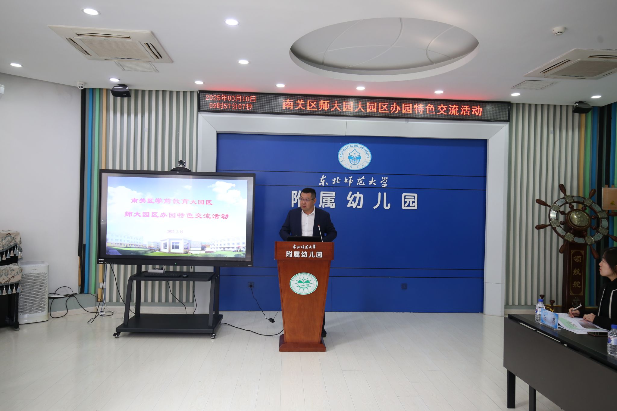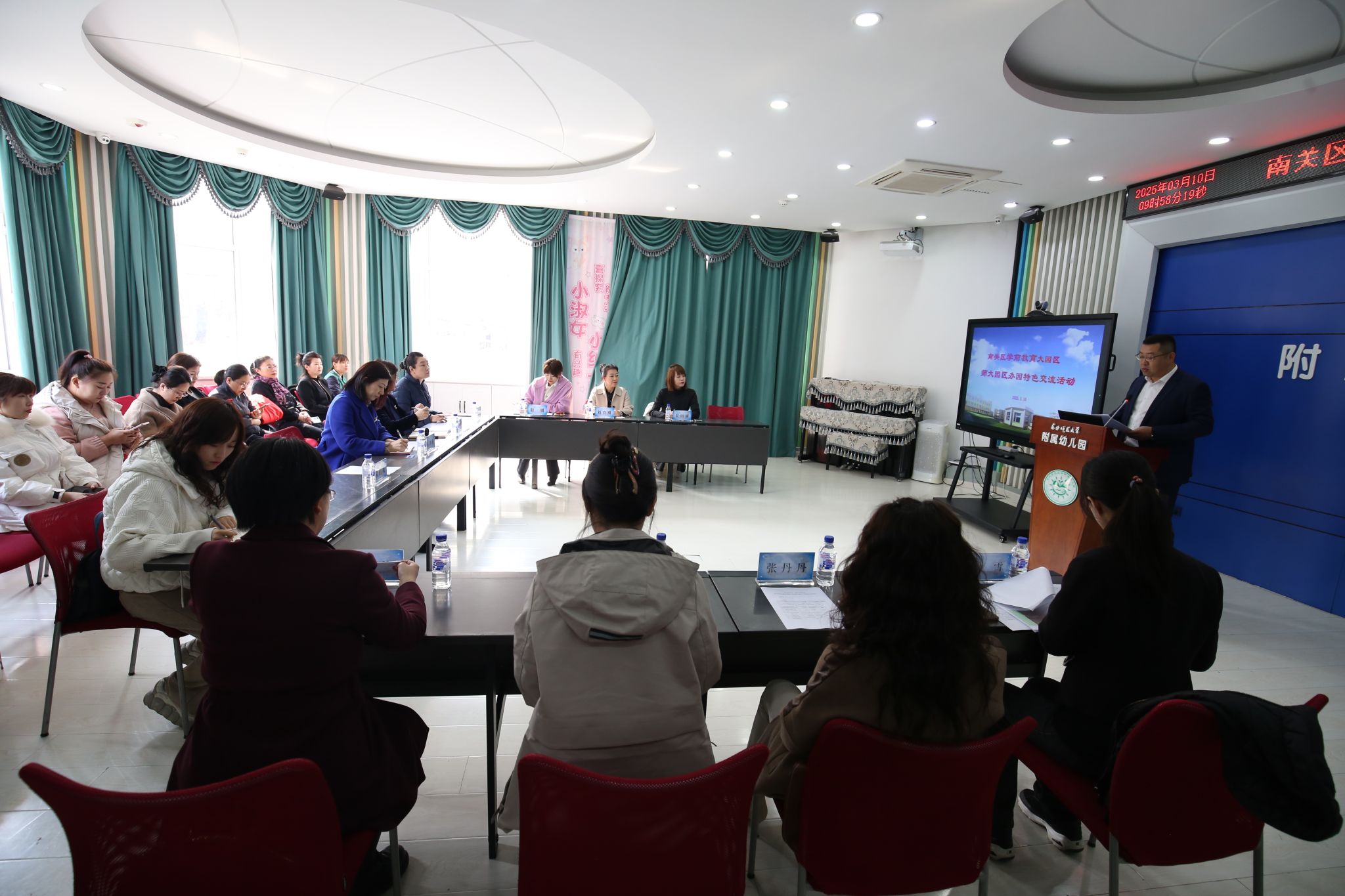 3月10日,为深入贯彻落实吉林省“十四五”学前教育发展提升行动计划,推动大园区办园模式创新与特色化发展,发挥东北师范大学附属幼儿园大园区引领园的辐射带动作用,进一步促进园所间的学习与交流,我校附属幼儿园举行南关区第二大园区办园特色交流活动。南关区教育局副局长孙静茹、南关区教师进修学校学前部主任刘阳,我校附属幼儿园相关负责人及第二大园区7所成员园班子成员和教师代表近40人参加本次交流活动。